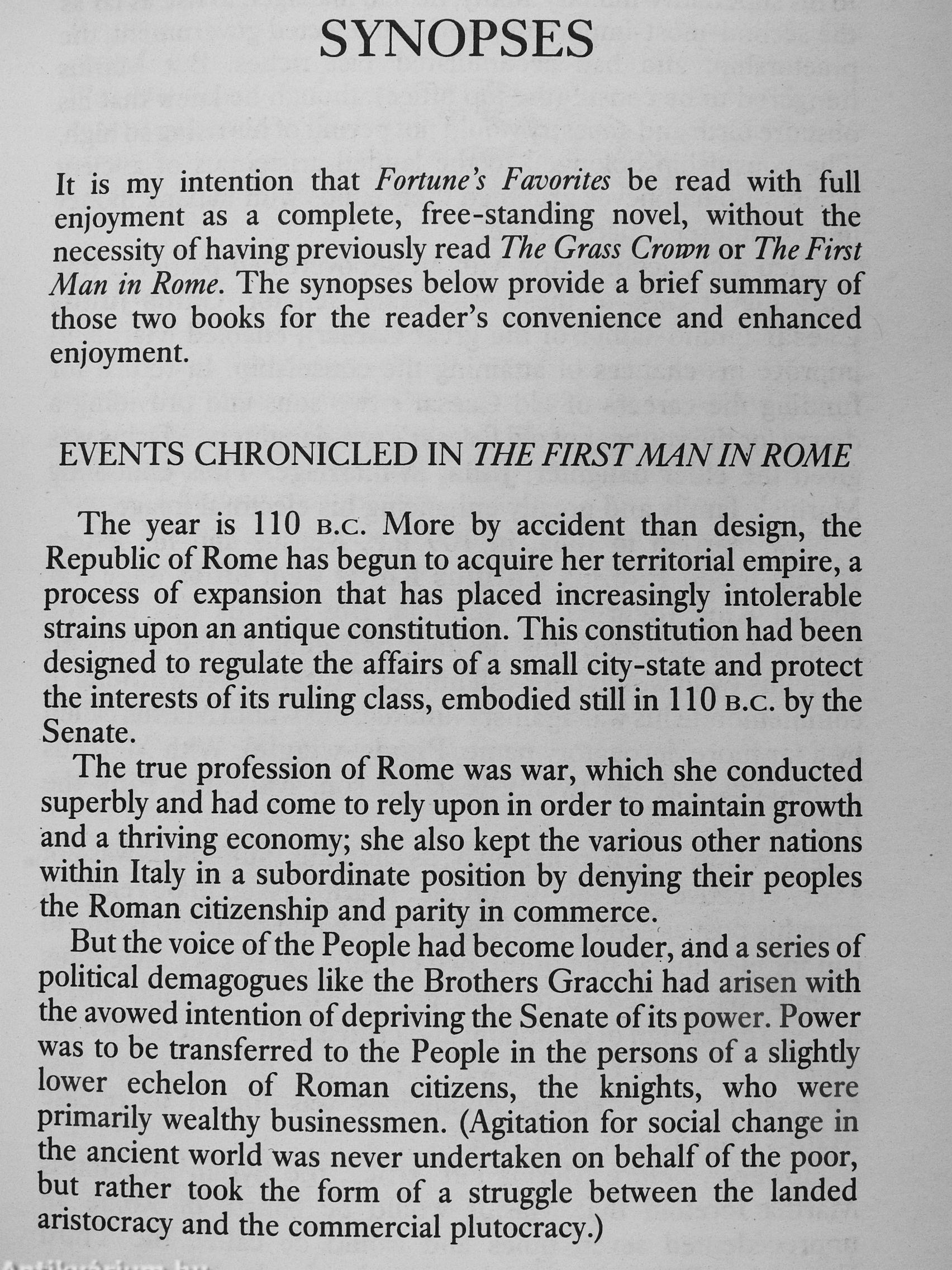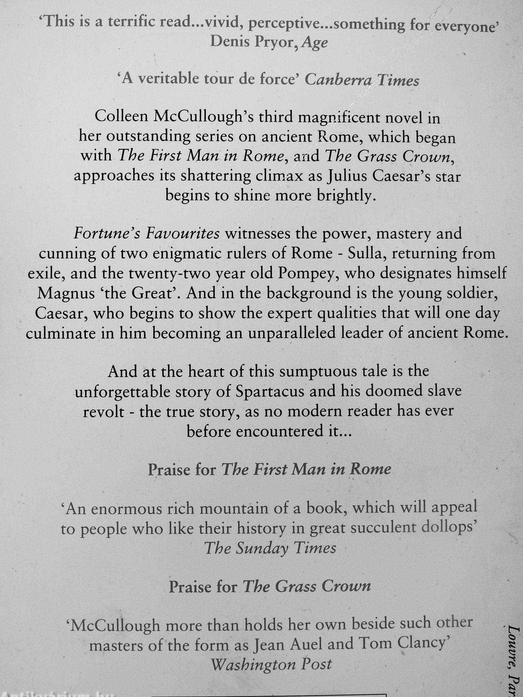 Fortune's Favourites witnesses the power, mastery and cunning of two enigmatic rulers of Rome - Sulla, returning from exile, and the twenty-two year old Pompey, who designates himself Magnus 'the Great'. And in the background is the young soldier, Caesar, who begins to show the expert qualities that will one day culminate in him becoming an unparalleled leader of ancient Rome.