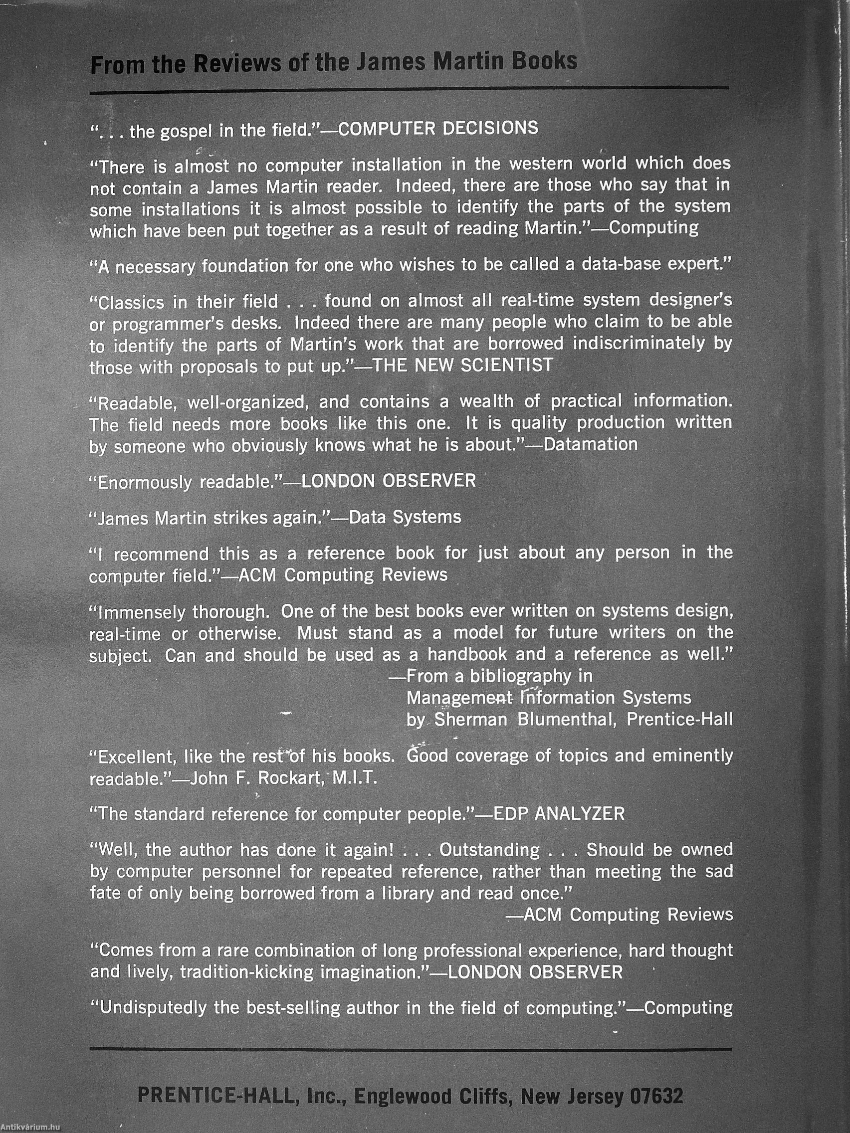 "There Is almost no computer Installation In the western world which does not contain a James Martin reader. Indeed, there are those who say that in some Installations It Is almost possible to identify the parts of the system which have been put together as a result of reading Martin."—Computing