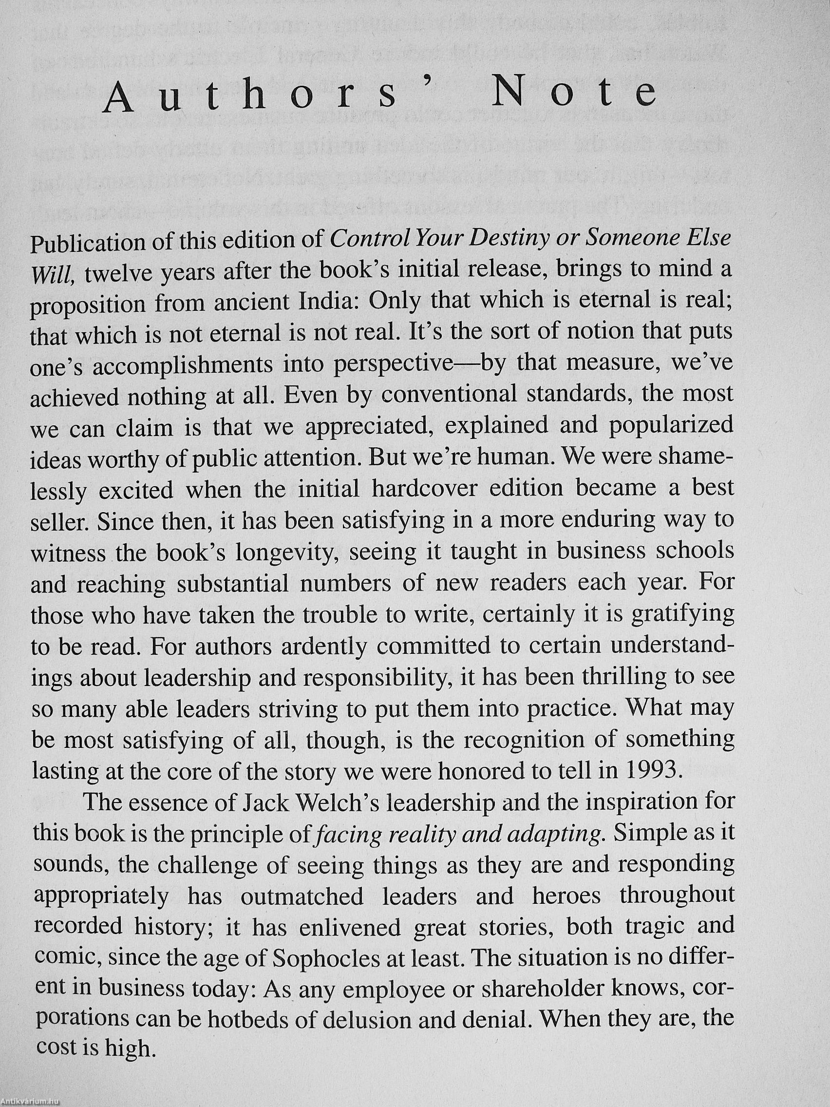 1. Control your destiny or someone else will.