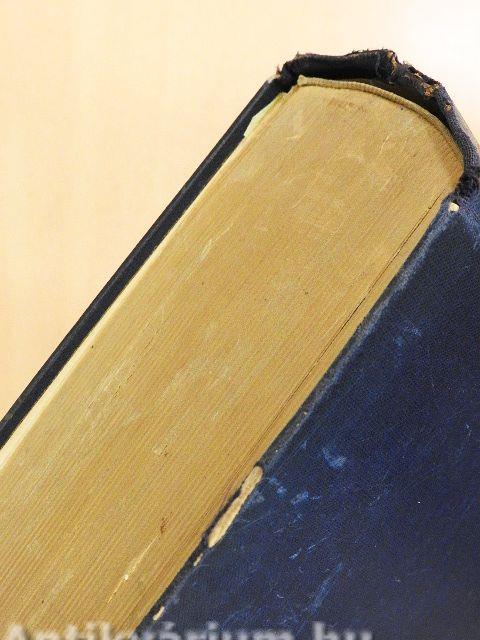 A borító kopott, éle sérült. A kötés javított. Az előlapon ajándékozási bejegyzés, a címlapon ceruzás bejegyzés található.