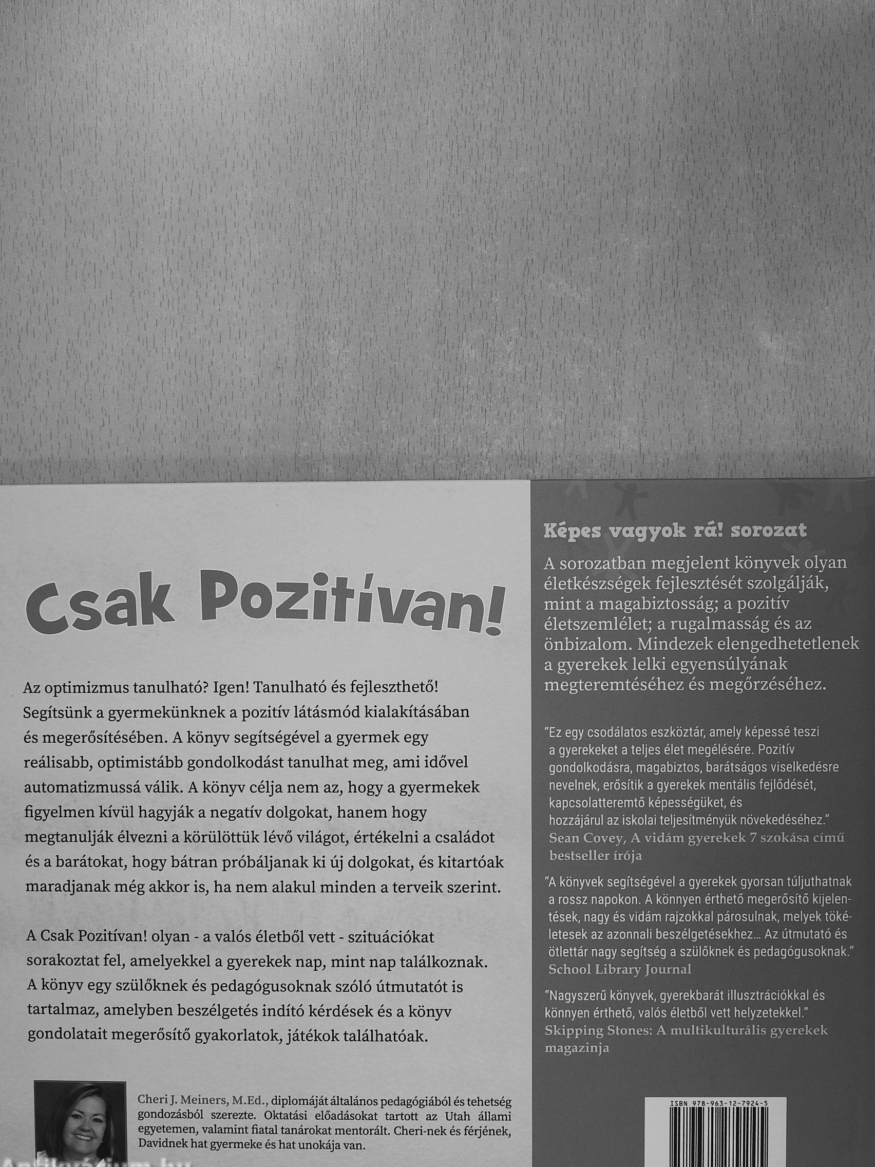 A Csak Pozitívan! olyan - a valós életből vett - szituációkat sorakoztat fel, amelyekkel a gyerekek nap, mint nap találkoznak. A könyv egy szülőknek és pedagógusoknak szóló útmutatót is tartalmaz, amelyben beszélgetés indító kérdések és a könyv gondolatait megerősítő gyakorlatok, játékok találhatóak.