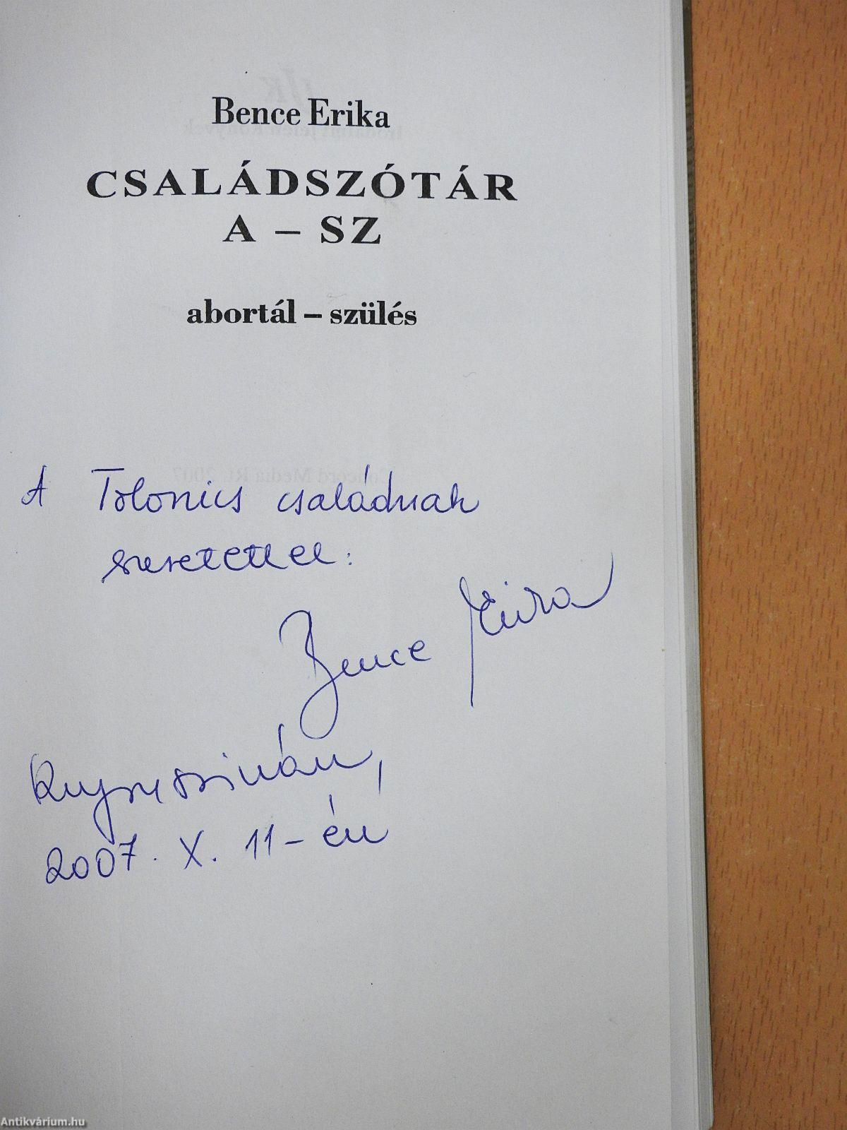 Családszótár A-SZ (dedikált példány) Családszótár A-SZ (dedikált példány) Családszótár A-SZ (dedikált példány)