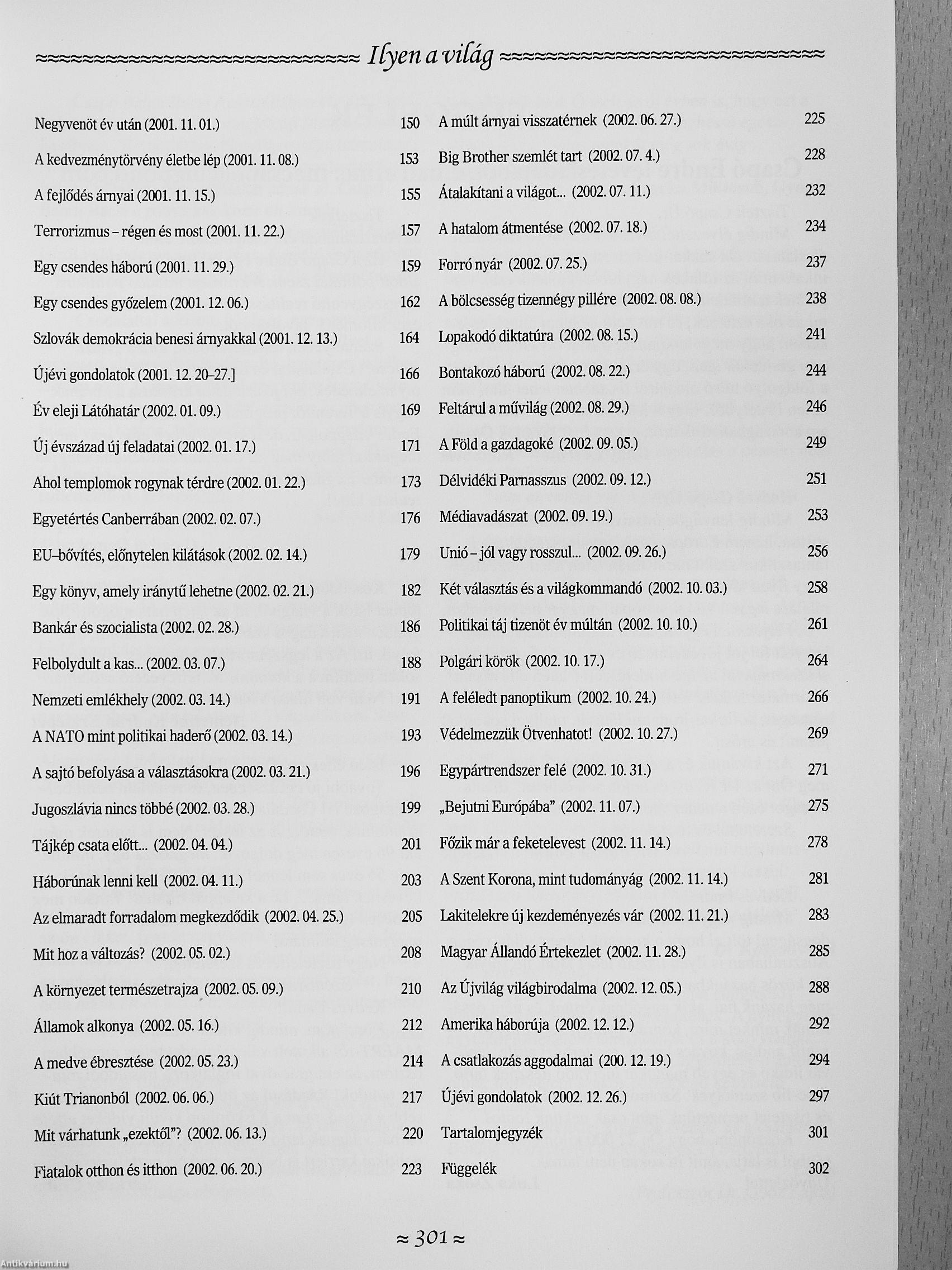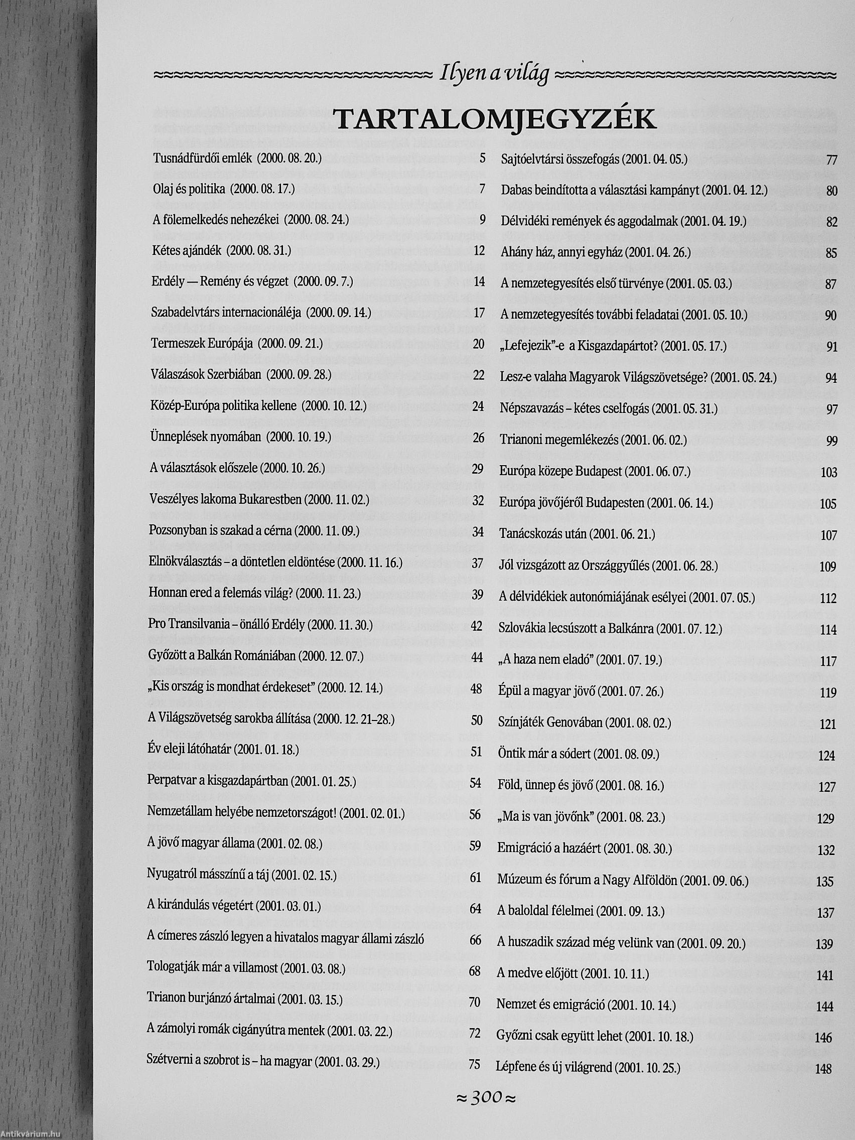 Záró írása pedig. Újévi gondolatok - 2003-at köszöntve - azt az útravalót tartalmazza, amely ma is aktuális: „nagyon időszerű lenne kibontani a szellemi ellenállás Pro Libertate zászlóit minden ellen, ami bántja, hiátráltatja a magyart az Egy a nemzet mozgalom szellemében!"