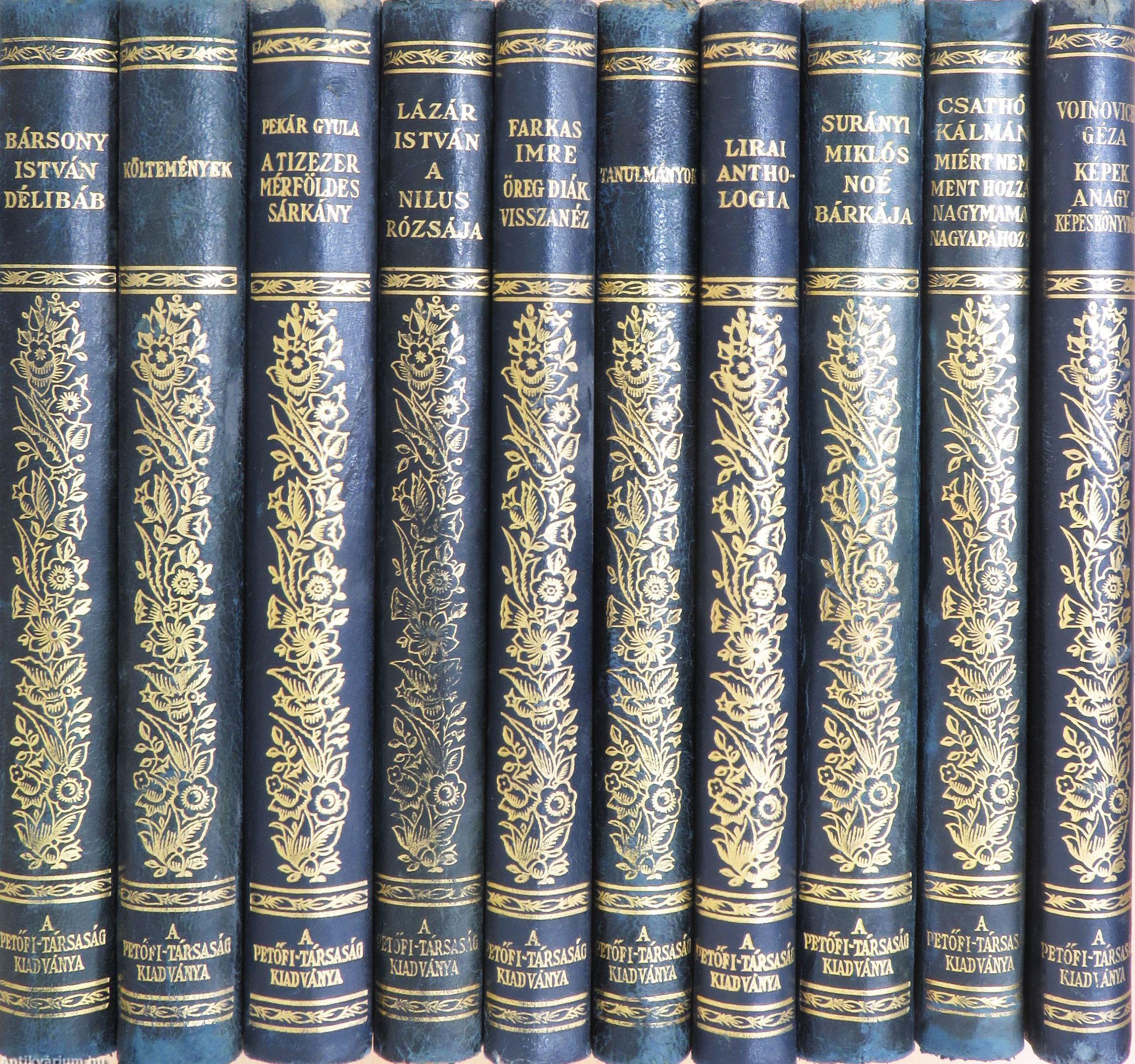 | Megjegyzés: | Aranyozott gerincű félbőr kötésben. Nem teljes sorozat. Nyomtatta az Athenaeum r.-t. könyvnyomdája. A szerzőkről készült fekete-fehér illusztrációkkal. A Petőfi-társaság kiadványa. |