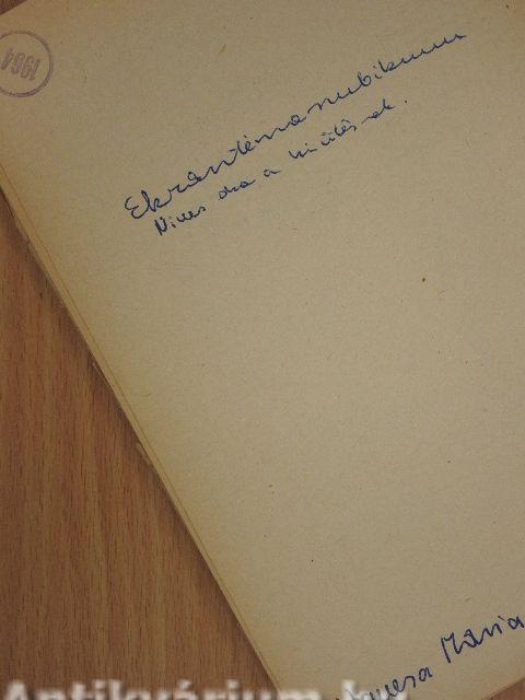 A borító foltos, a gerinc kopott, néhány lap vágáshibás. A borító belső oldalán és a címlapon gyermekrajz látható. A címlapon tulajdonosi bejegyzés, az előlapon bejegyzés található.