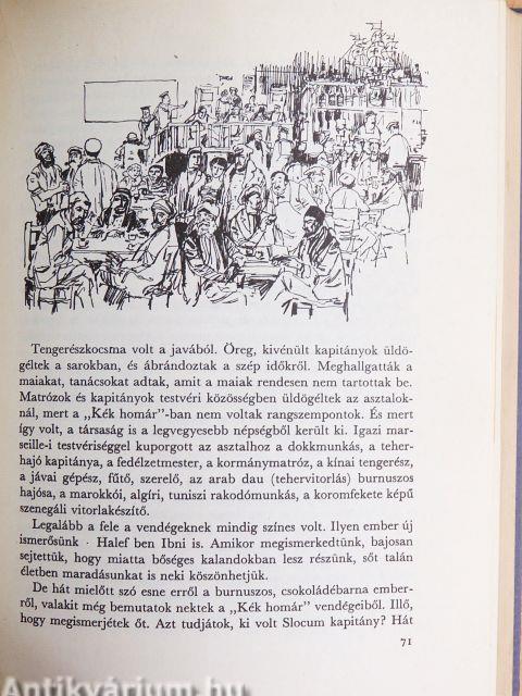 | Két zsák miatt? - Egy világkikötő - Az Óváros érdekességei - A "Kék homár"-ban - Slocum kapitány utóda, Alain Gerbault - A világjáró Firecrest - A Szultán Négy Asztala - Halef ben Ibni, a költő - Penészednek a vitorlák - Egy gyönyörű autó - Lord Cardigan - Tedd sutba a tudományodat! - Négyféle paplan egy embernek - Eltűnt három emberünk! - Sztrájk a kikötőben - Megjöttek az elveszettek - Új bendzsó kell - Irány: dél-délnyugat! - Daniló bácsi a hajózás és a kultúrák tengeréről | 66 |
