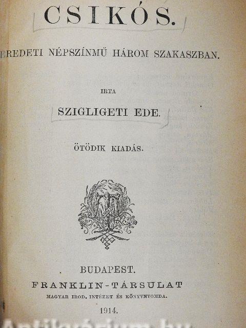 | Megjegyzés: | Ötödik kiadás. Nyomtatta a Franklin-Társulat Nyomdája, Budapest. |