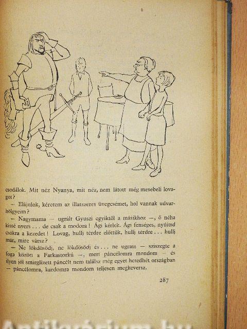 | Gyuszi a szó szoros értelmében túltesz Háry Jánoson; ezzel magára zúdítja a veszedelmet, amely veszedelem közepette Ágiból hercegnő lesz, Nagymama is nagyhercegnő, de Balogh bácsi semmiképpen nem akar király lenni. A különös az, hogy mikor Anya megjön Vácról, szinte kételkedik a dolgok valóságában | 239 |