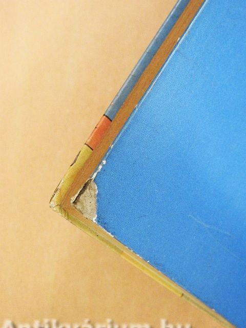 A gerinc foltos, kopott. A borító belső oldalán ragasztott címke látható. A borító élei sérültek.