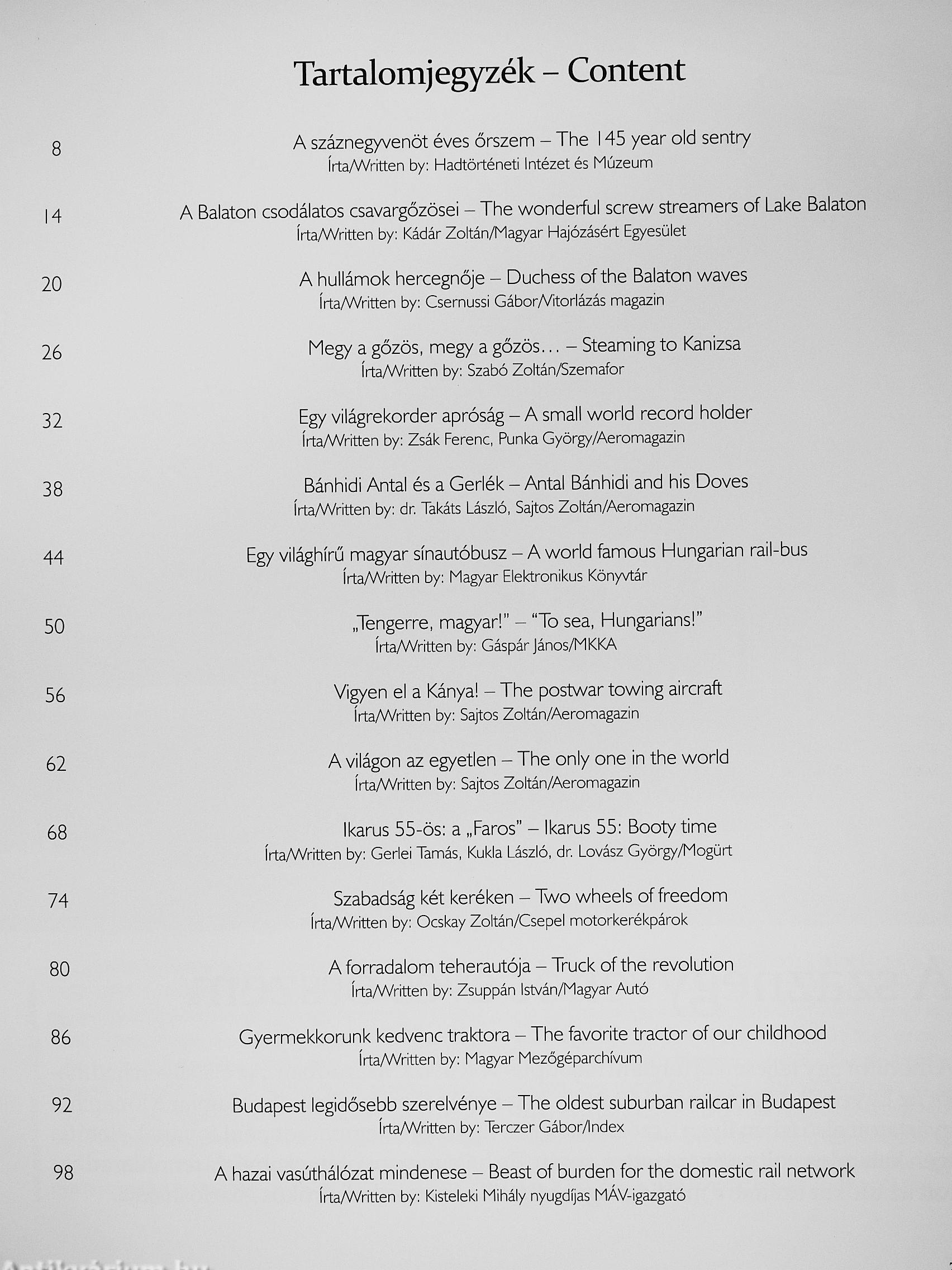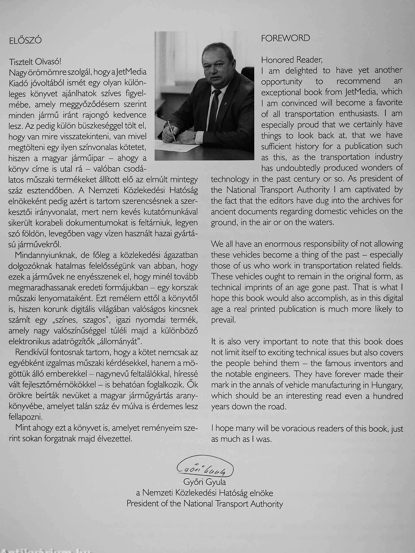 when they turned from a drawing into real, operational pieces of machinery. Our collection of wonderful Hungarian vehicles provides you with an opportunity to read all about them. To read about ships, locomotives, aircraft and road vehicles that have been designed and made in Hungary, about vehicles that were the best known individuals of their age and that still have working or exhibited examples today. Enjoy your book and best travels on this journey!