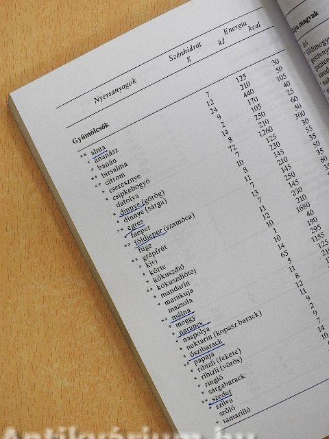 | Legfontosabb élelmiszereink szénhidrát és energiatartalma | 211 |