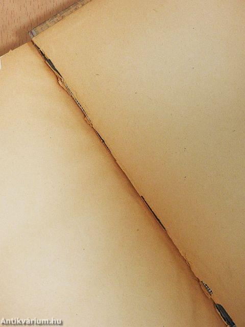 A védőborító szakadozott, hiányos, belső oldala javított. A borító kopott, a lapélek foltosak, a kötés megtört. A borító belső oldalán ex-libris címke, a címlapon tulajdonosi bejegyzés található.