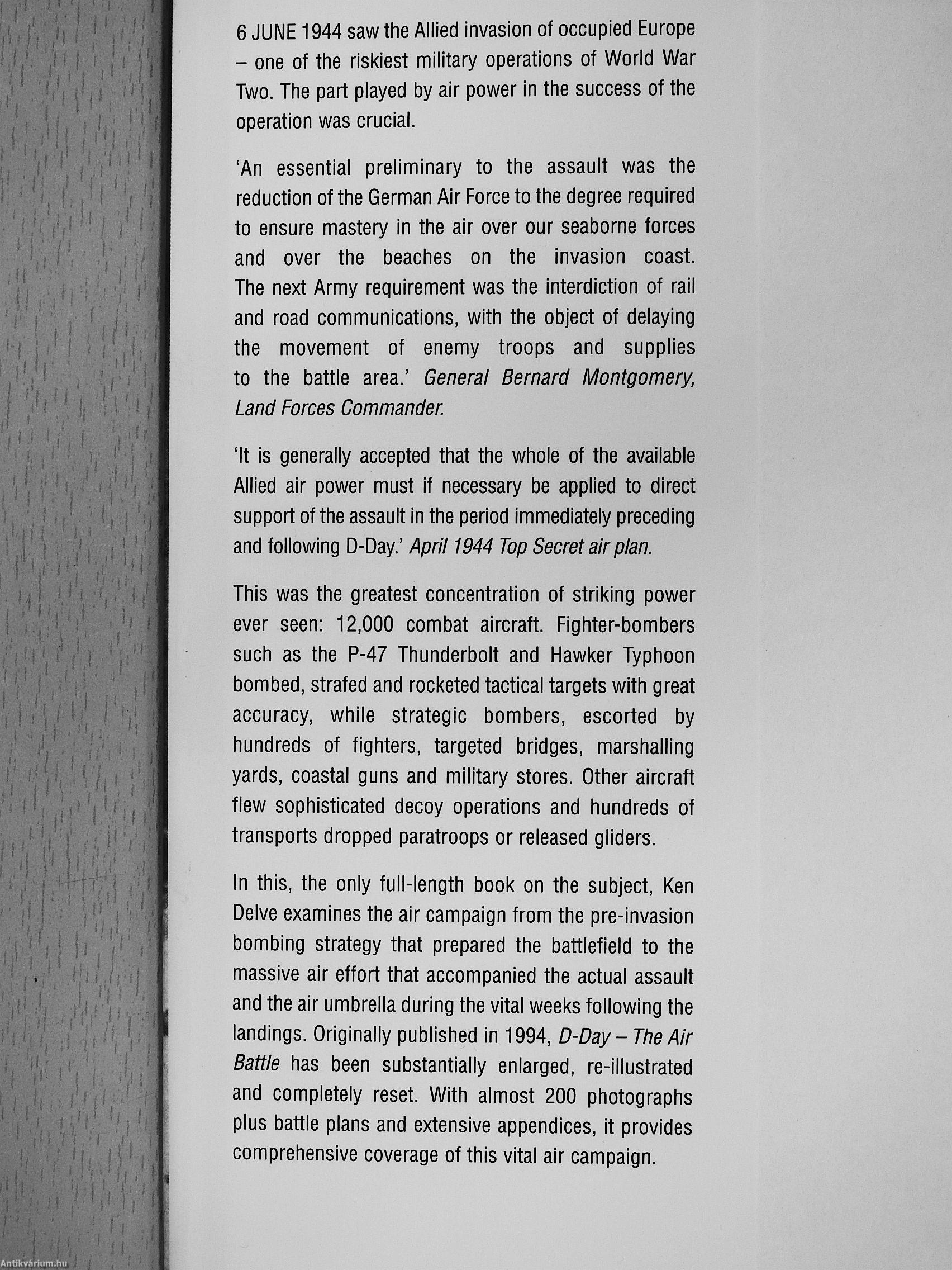 In this, the only full-length book on the subject. Ken Delve examines the air campaign from the pre-invasion bombing strategy that prepared the battlefield to the massive air effort that accompanied the actual assault and the air umbrella during the vital weeks following the landings. Originally published in 1994, D-Day- The Air Battle has been substantially enlarged, re-illustrated and completely reset. With almost 200 photographs plus battle plans and extensive appendices, it provides comprehensive coverage of this vital air campaign.