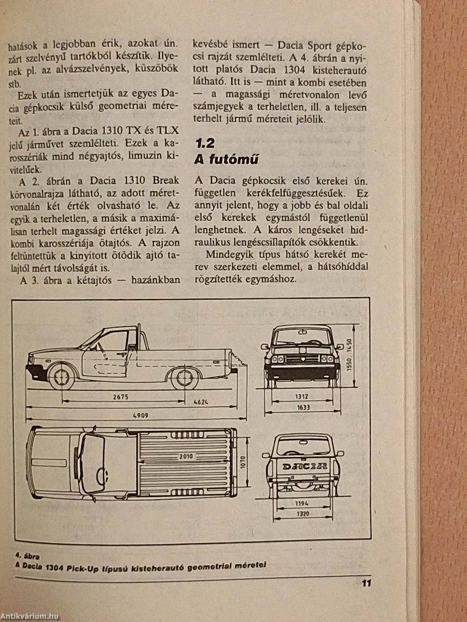 A könyv tartalmazza a Dacia 1310 TX és TLX, az 1310 Break és 1410 Sport, valamint 1304 Pick-Up típusok néhány műszaki jellemzőit is.