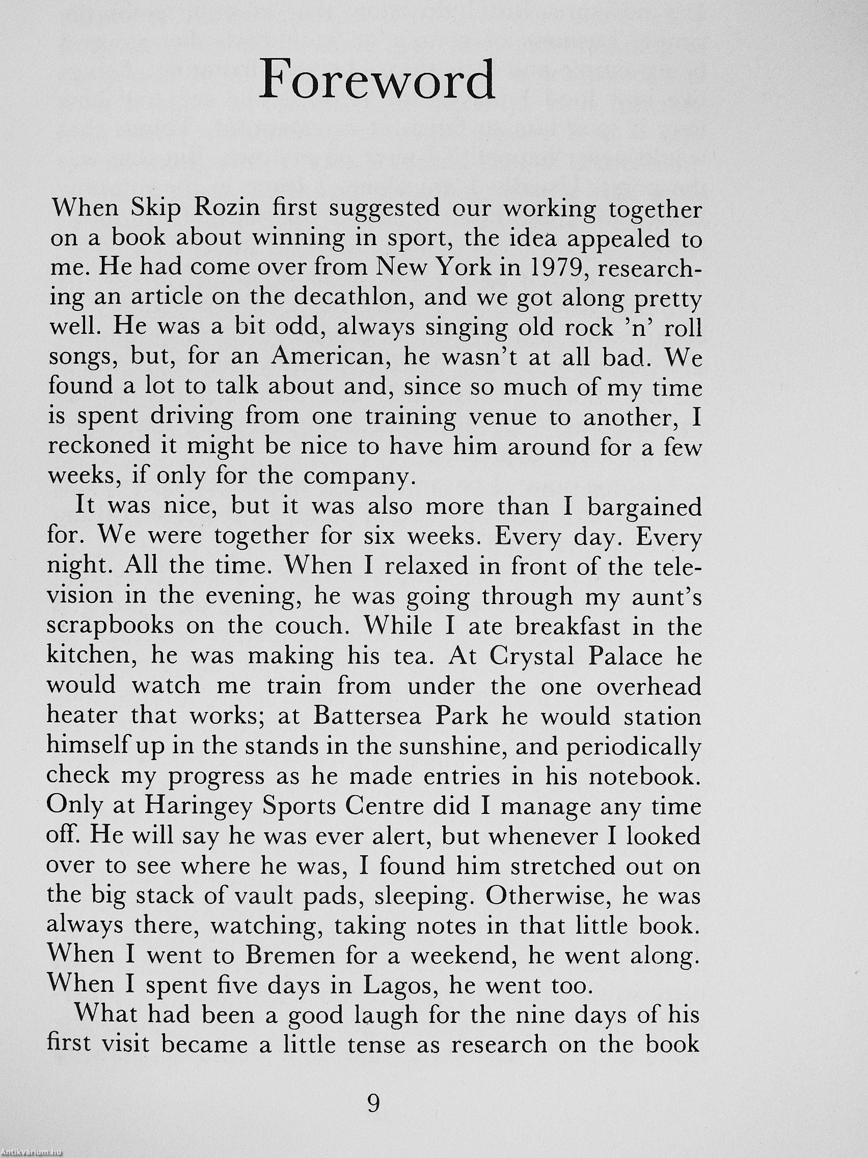 Thompson grew up in the racial mix of Netting Hill and was packed off to boarding school at the age of seven. He was a fiery boy and has become a controversial adult, amusing and self-assured, but always respected for the price he pays for his sport. For nine weeks American writer Skip Rozin followed Thompson everywhere, watching him train, questioning him closely and recording his thoughts. With astonishing candour he discusses his triumphs, his crushing defeat at Prague, and the strong will that drives him on. This is certainly the most powerful and illuminating study yet to be published of what it takes to become a world champion in the cauldron of high level sport.