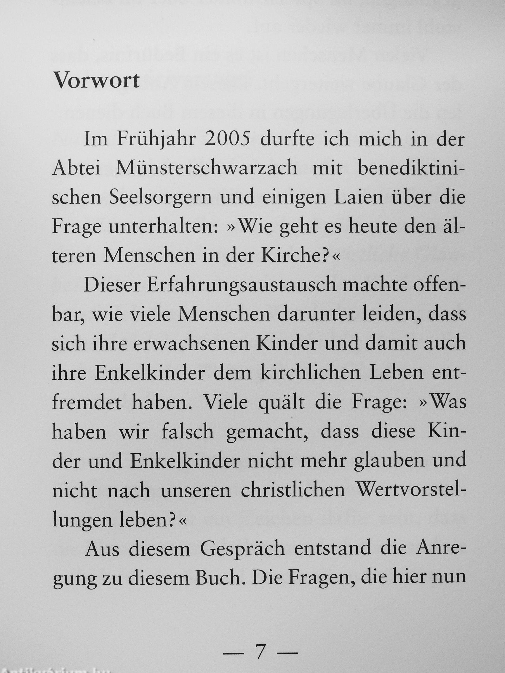 Odilo Lechner geht auf diese Selbstvorwürfe ein, erklärt die Situation und macht die unterschiedliche Haltung der Generationen deutlich. Als Seelsorger, der mit diesen Problemen regelmäßig konfrontiert wird, antwortet er auf Anfragen und gibt den Betroffenen Rat, ermutigt sie im Glauben und unterstützt sie in dieser schwierigen Phase.