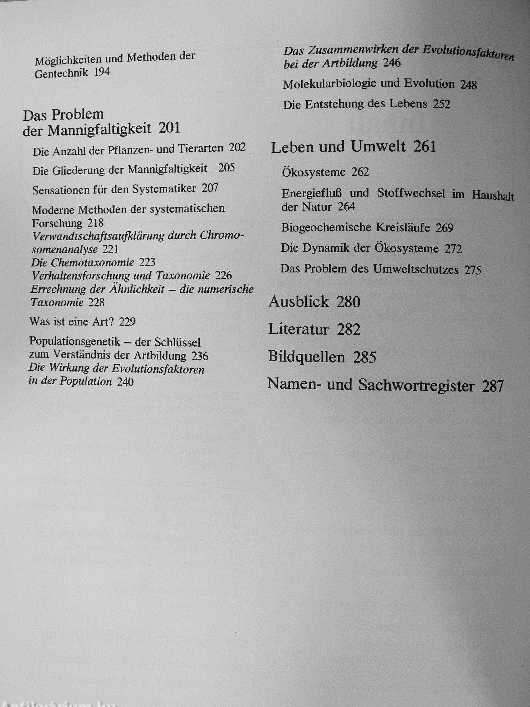 Die Fragestellungen reichen heute vom Gleichgewicht der Lebensgemeinschaften bis hinab zu den kleinsten Lebensstrukturen der Zellen, die das moderne Elektronenmikroskop in hunderttausendfacher Vergrößerung sichtbar macht. Eben in diesen kleinsten Bereichen des lebenden Organismus sind vielleicht auch die faszinierendsten und weitreichendsten Entdeckungen der letzten Jahre gelungen. Es ist heute schon möglich, Gene höherer Organismen -ja sogar des Menschen! -in Bakterien einzubauen und diese zur Produktion bestimmter Substanzen zu veranlassen. 1978 wurde auf... Tovább
