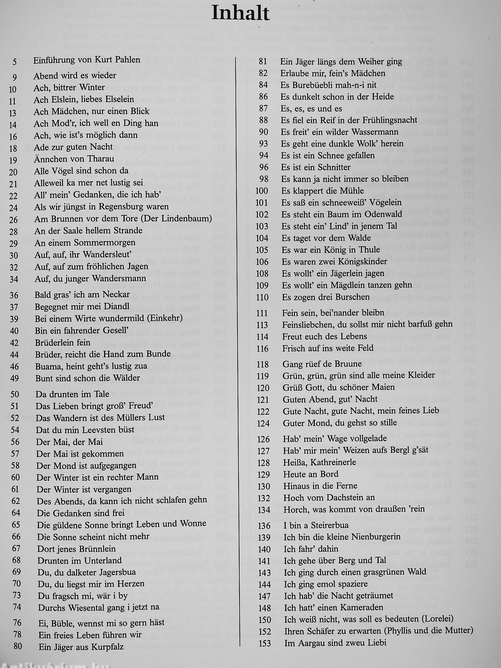 in die Ferne und vom Heimweh, vom Waldesdunkel und Wiesengrün, vom ewigen Rollen der Wogen, vom Rauschen alter Brunnen und vom unfaßbaren Ziehen der Sterne in der Nacht Lieder vom menschlichen Leid und Glück, von Lachen und Tränen, von Geheimnissen und Regungen der Seele." (Kurt Pahlen)