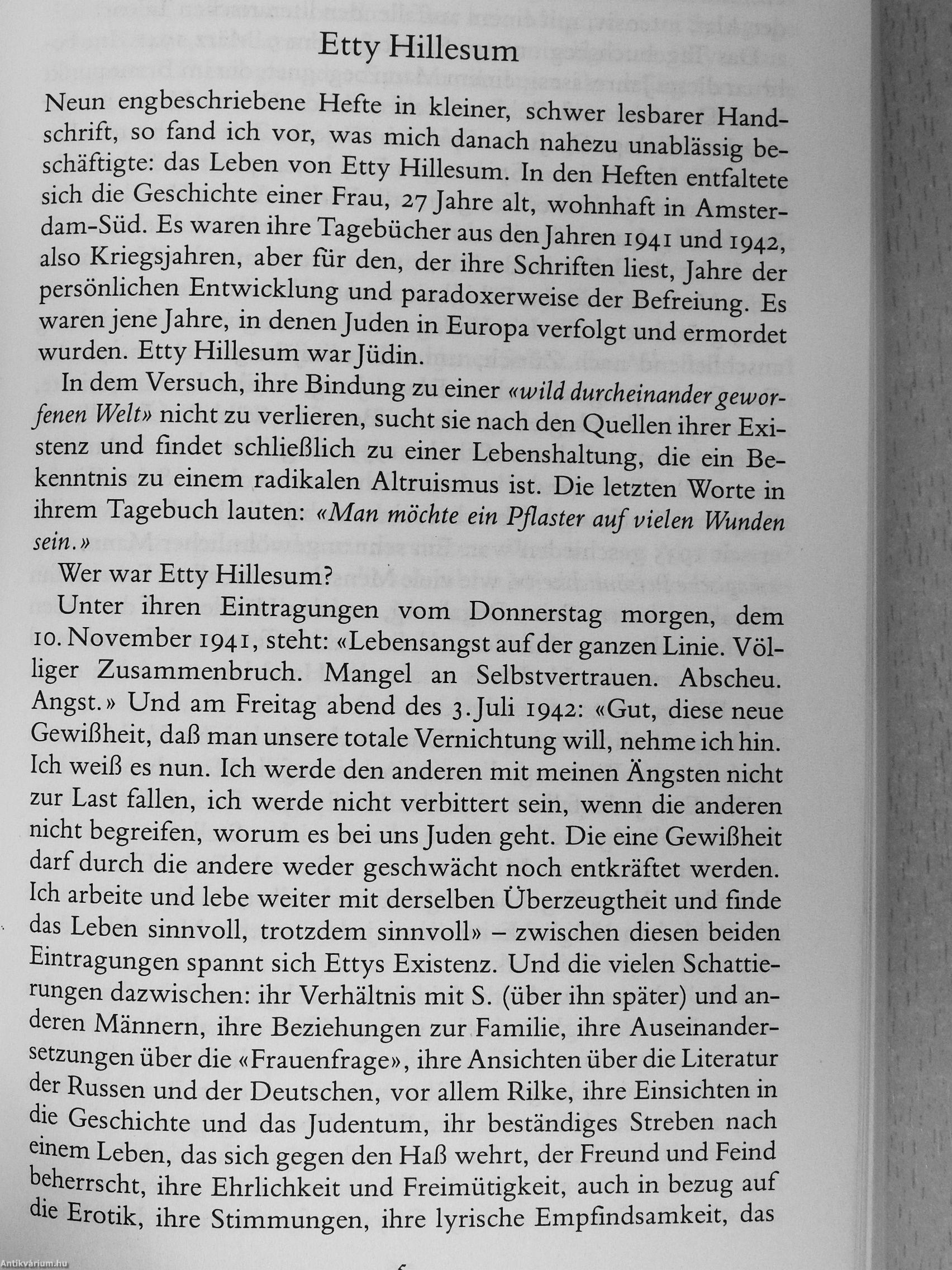 Etty Hillesum műveinek az Antikvarium.hu-n kapható vagy előjegyezhető listáját itt tekintheti meg: Etty Hillesum könyvek, művek