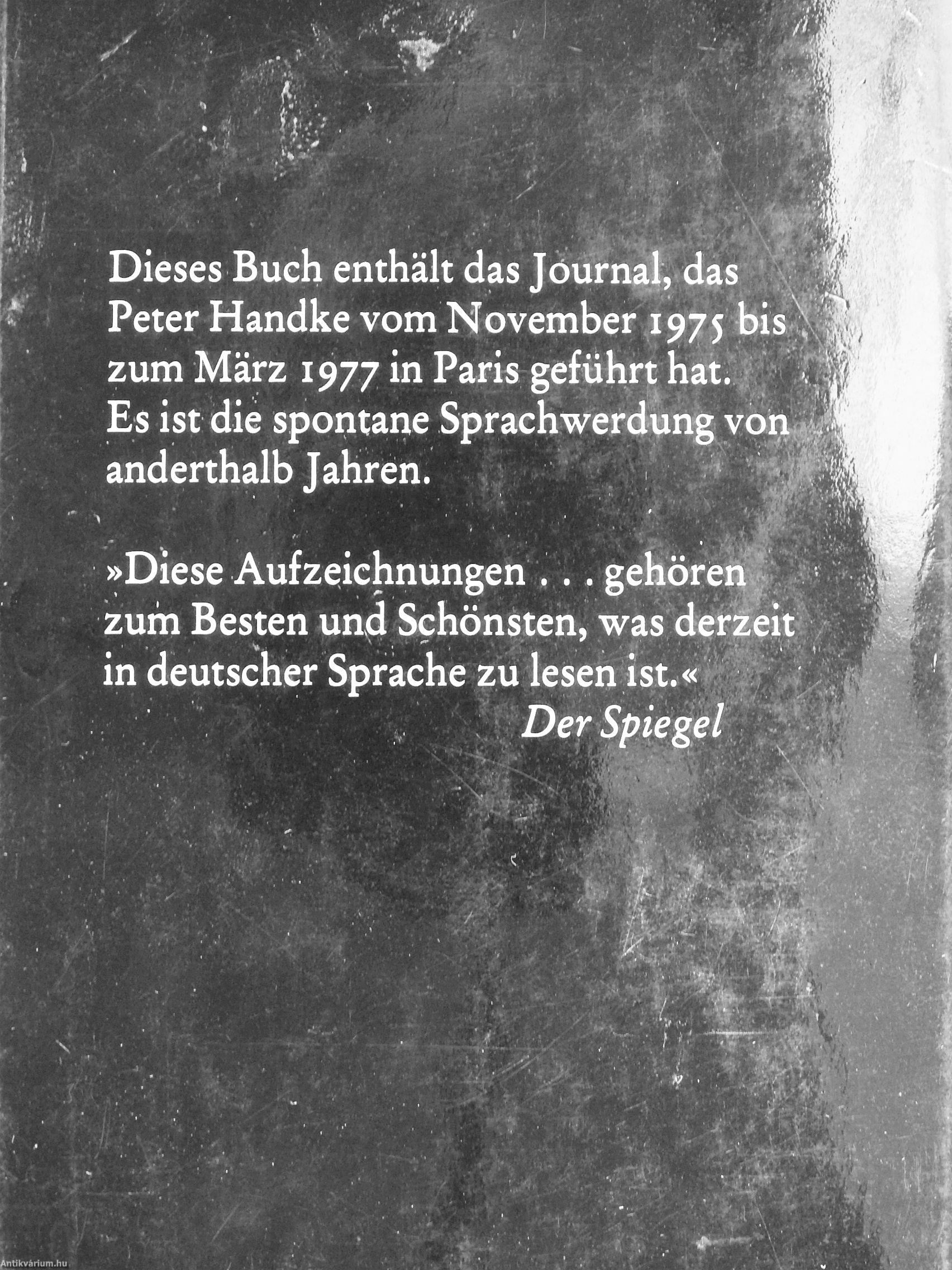 Dieses Buch enthält das Journal, das Peter Handke vom November 1975 bis zum März 1977 in Paris geführt hat. Es ist die spontane Sprachwerdung von anderthalb Jahren Leben.
