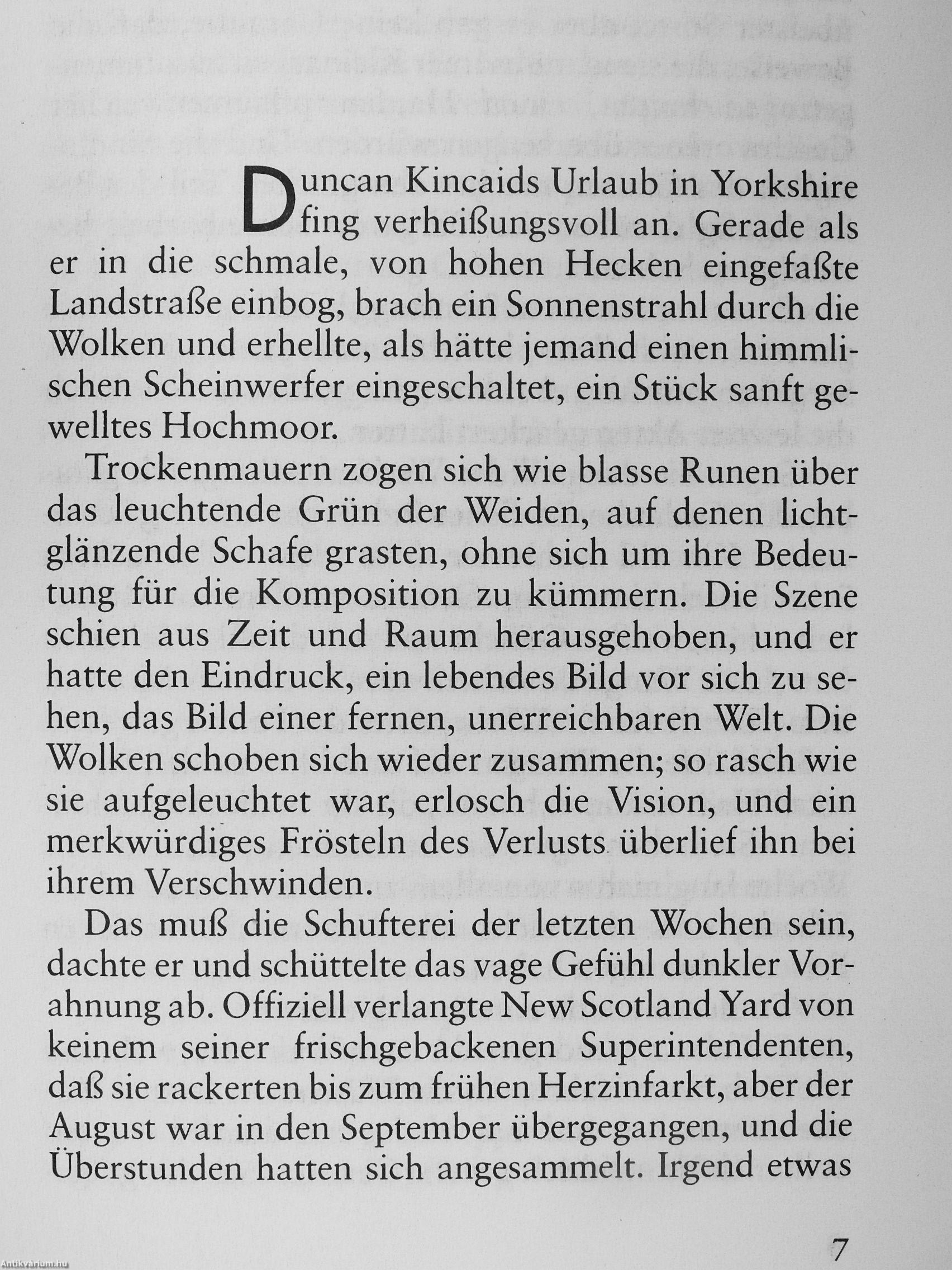 reist Scotland Yard-Inspektor Duncan Kincaid in den wohlverdienten Urlaub. Sein Ziel ist ein abgelegenes Hotel ih Yorkshire. Die Aussicht auf friedvolle Tage in herbstlicher Moorlandschaft wird jäh zerstört, als ein Hotelangestellter leblos an der Oberfläche des Pools schwimmt