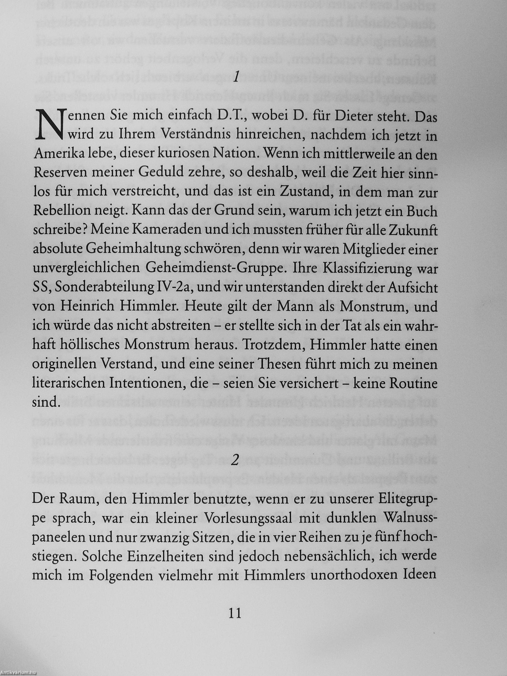 Der Erzähler ist ein mysteriöser SS-Mann, ein Agent, der ein außergewöhnliches Geheimnis mit sich trägt. Ausgehend von Hitlers Kindheit im Waldviertel entdeckt er bei seinen Nachfor-s<;hungen ein teuflisches Geflecht aus inzestuösen Verhältnissen, Obsessionen, dumpfer Gewalt und Angst.