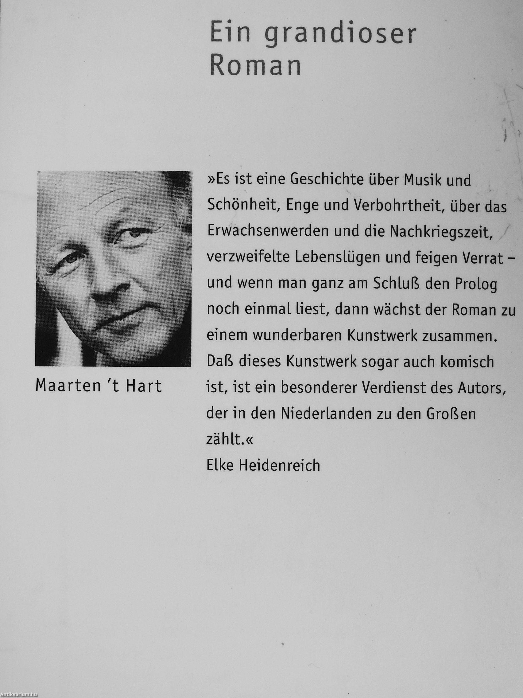 »Es ist eine Geschichte über Musik und Schönheit, Enge und Verbohrtheit, über das Erwachsenwerden und die Nachkriegszeit, verzweifelte LebensLügen und feigen Verrat -und wenn man ganz am Schluß den Prolog noch einmal liest, dann wächst der Roman zu einem wunderbaren Kunstwerk zusammen. Daß dieses Kunstwerk sogar auch komisch ist, ist ein besonderer Verdienst des Autors, der in den Niederlanden zu den Großen zählt.«