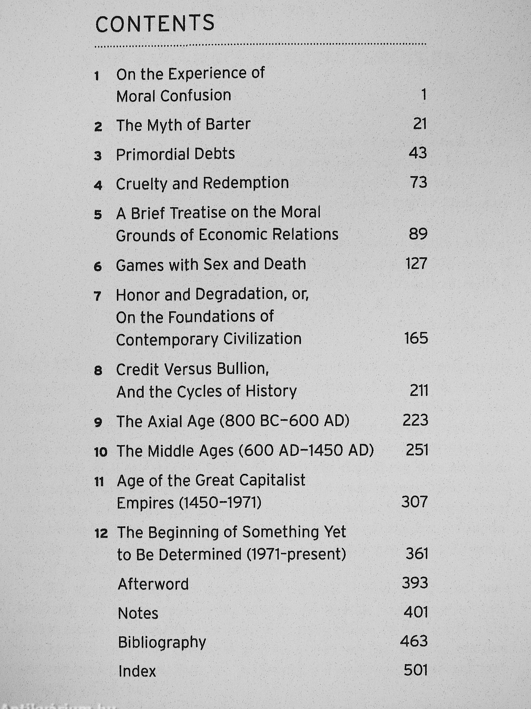 Here acclaimed anthropologist David Graeber presents a stunning reversal of conventional vsrisdom. He shows that for more than 5,000 years, since the first agrarian empires, humans have used elaborate credit systems to buy and sell goods—that is, long before the invention of coins or cash. It is in this era that we first encounter societies divided into debtors and creditors.