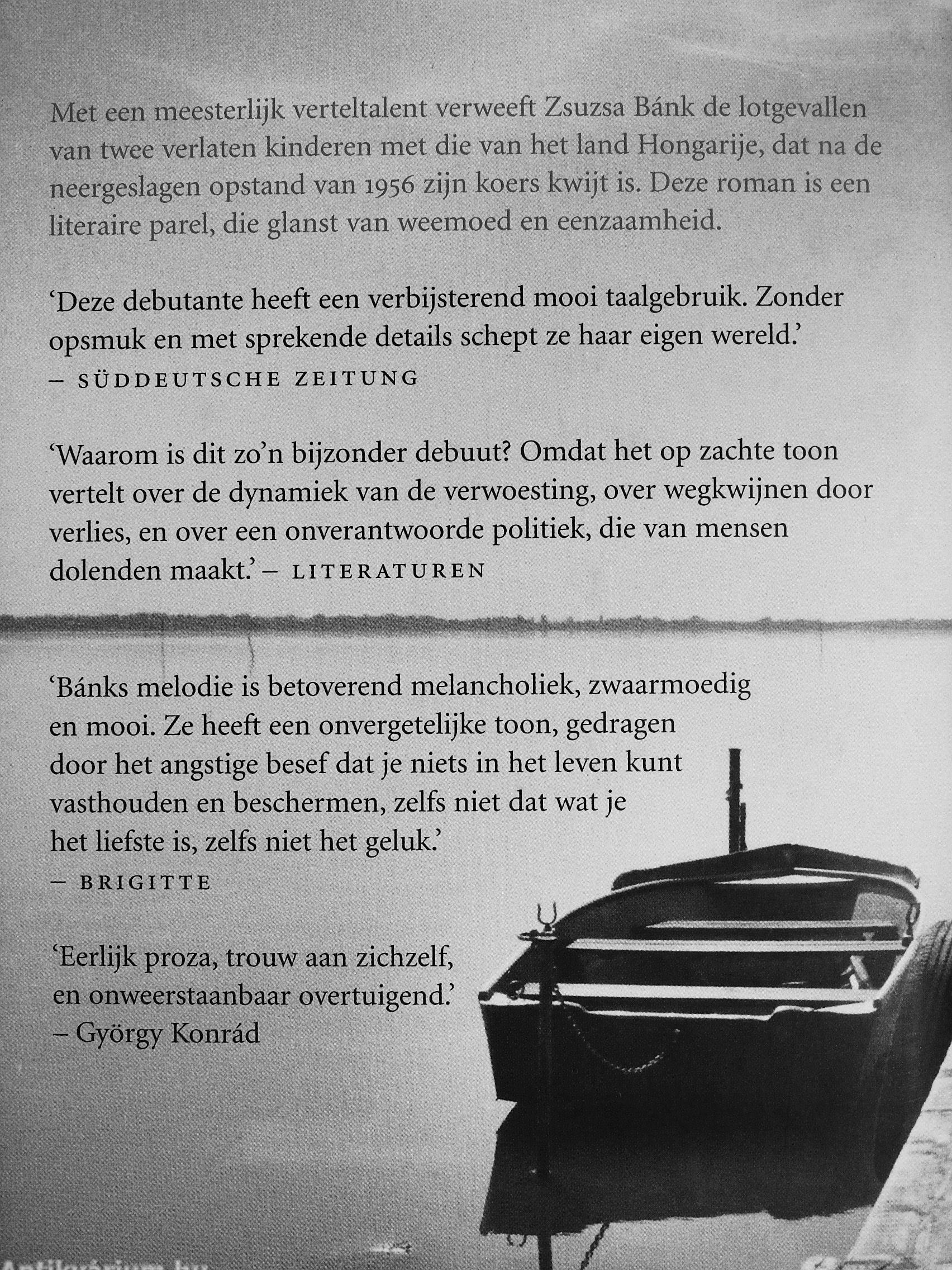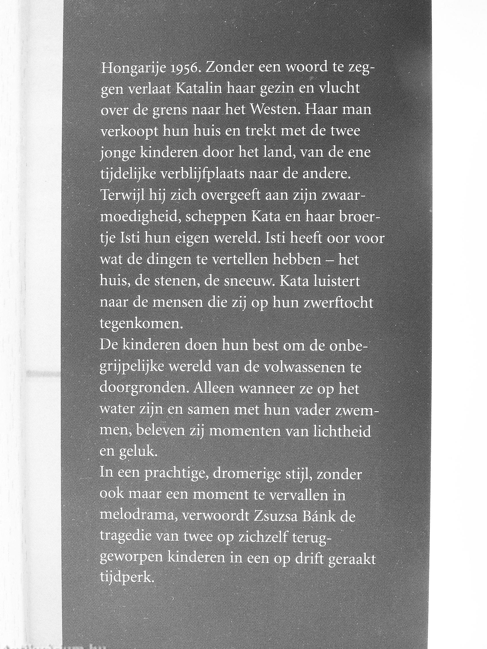 In een prachtige, dromerige stijl, zonder ook maar een moment te vervallen in melodrama, verwoordt Zsuzsa Bánk de tragedie van twee op zichzelf terug-geworpen kinderen in een op drift geraakt tijdperk.