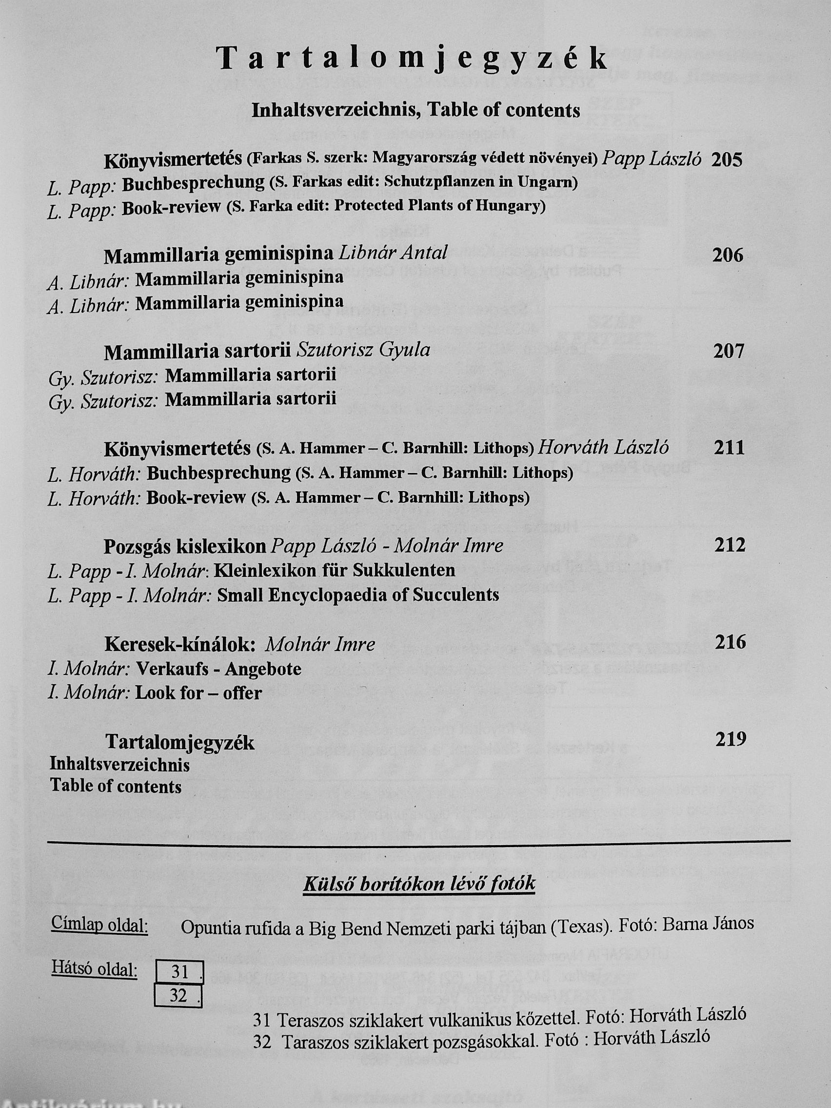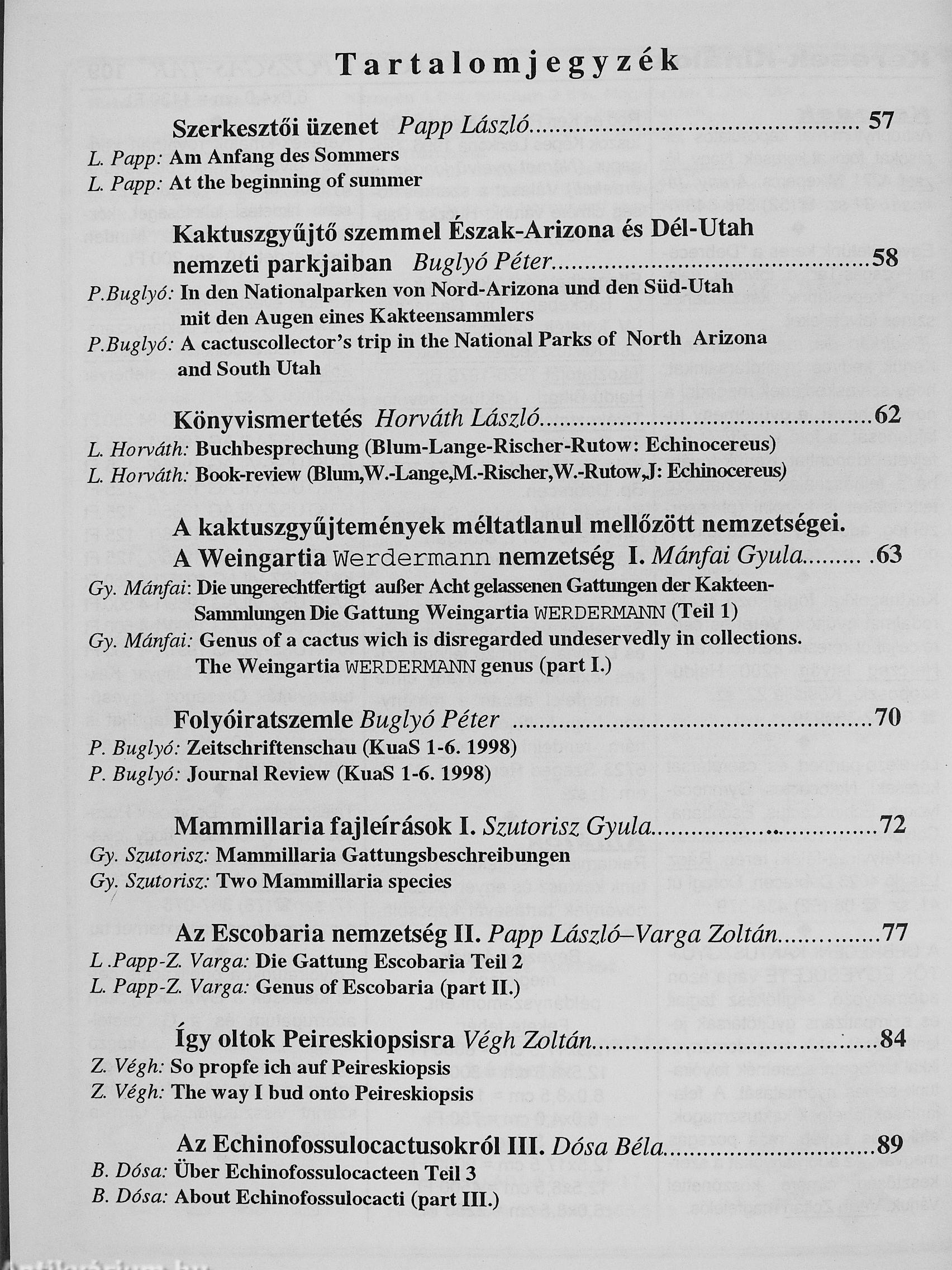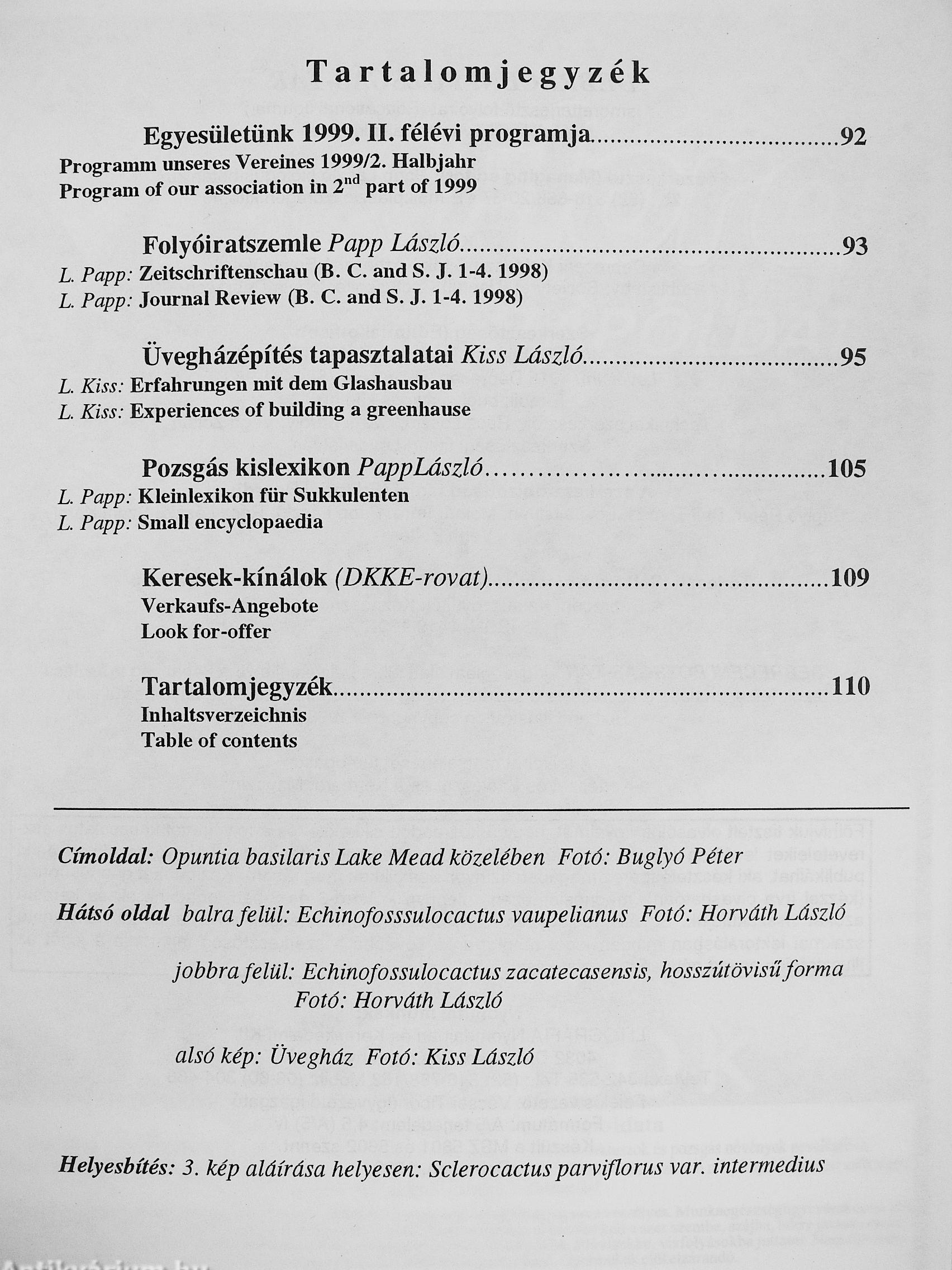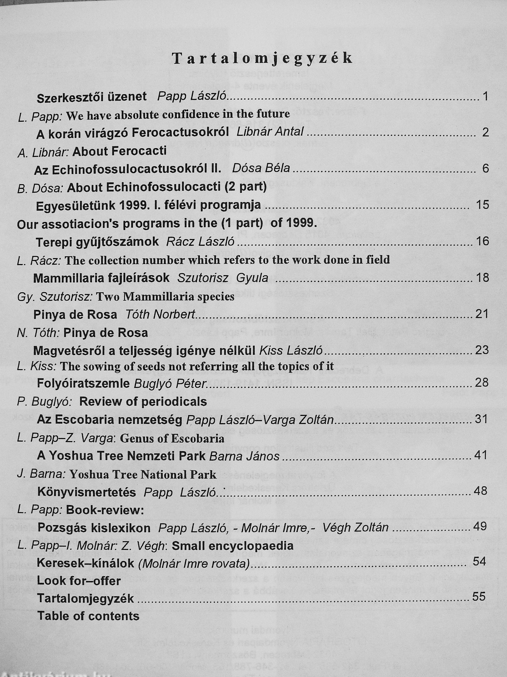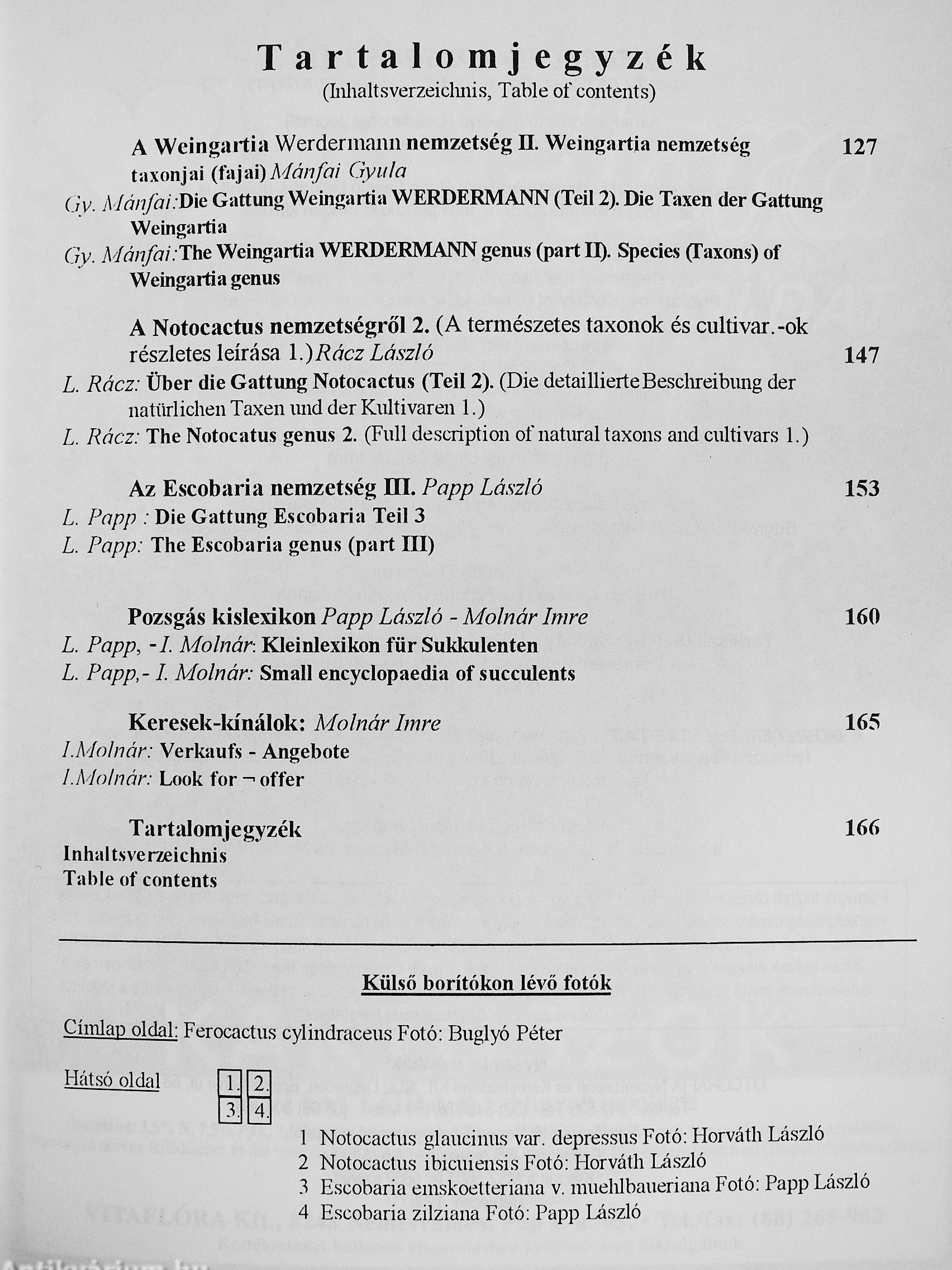 Kiadó: Debreceni Kaktuszgyűjtők Közhasznú Egyesülete-Egyetemi Kaktuszkör-REXPO Kft.