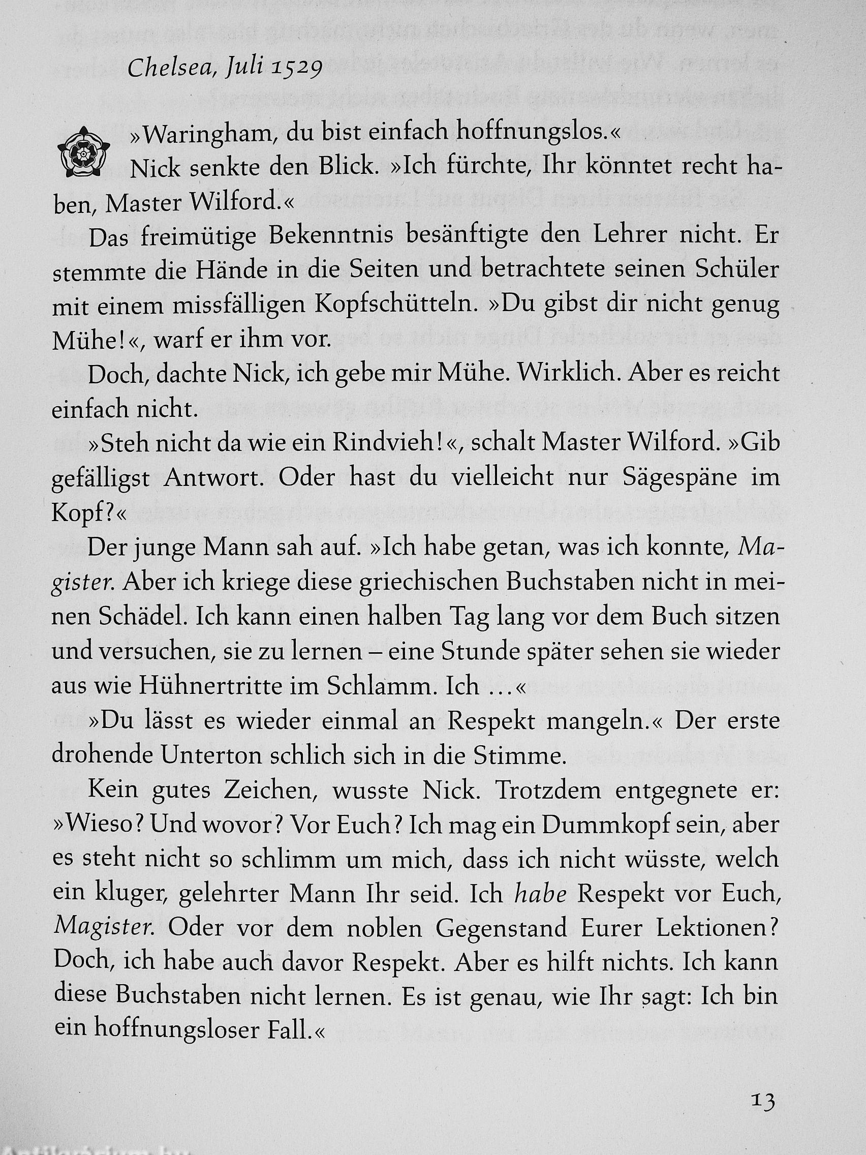 ¦ T ondón 1529: Der vierzehnjährige Nick ps ,^J—/of Waringham lebt als Internatsschüler Haus des berühmten Humanisten Sir ""'^Thomas More. Als Nicks Vater in Verdacht Ik"^ I gerät, ein Lutheraner und Häretiker zu