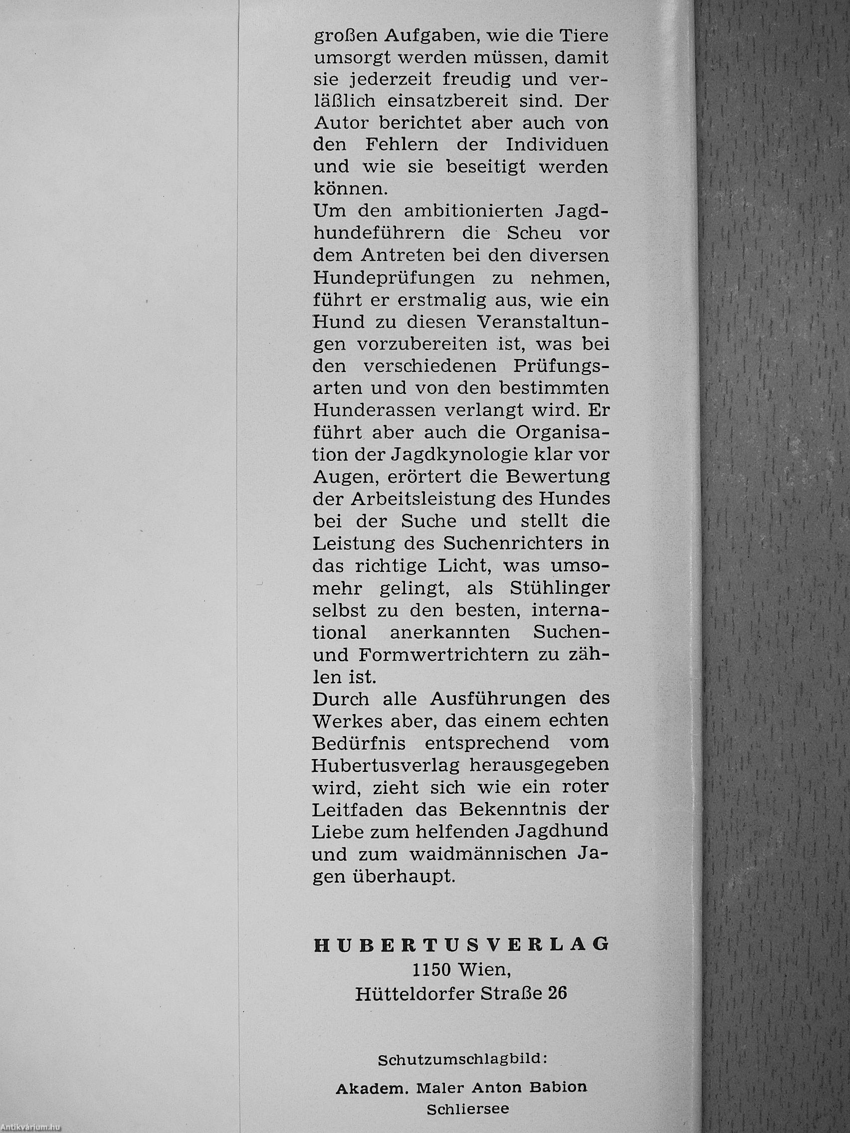 Durch alle Ausführungen des Werkes aber, das einem echten Bedürfnis entsprechend vom Hubertusverlag herausgegeben wird, zieht sich wie ein roter Leitfaden das Bekenntnis der Liebe zum helfenden Jagdhund und zum waidmännischen Jagen überhaupt.