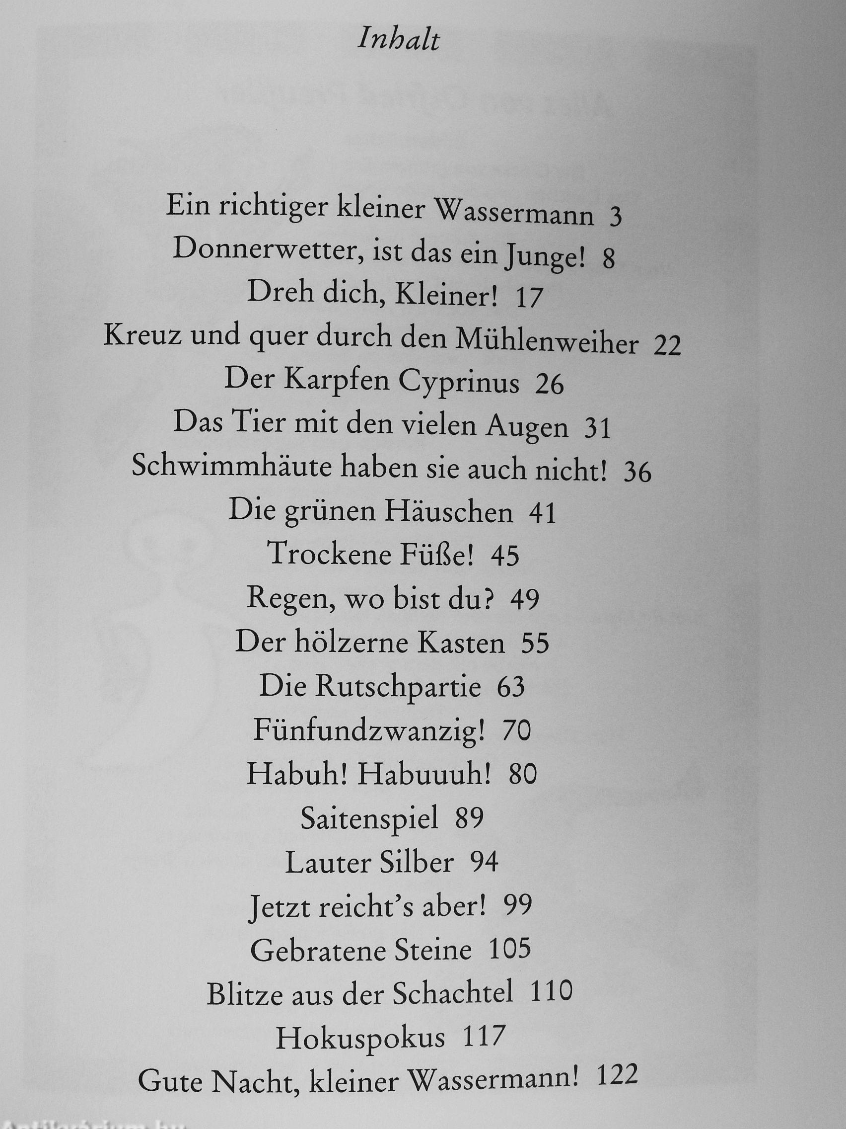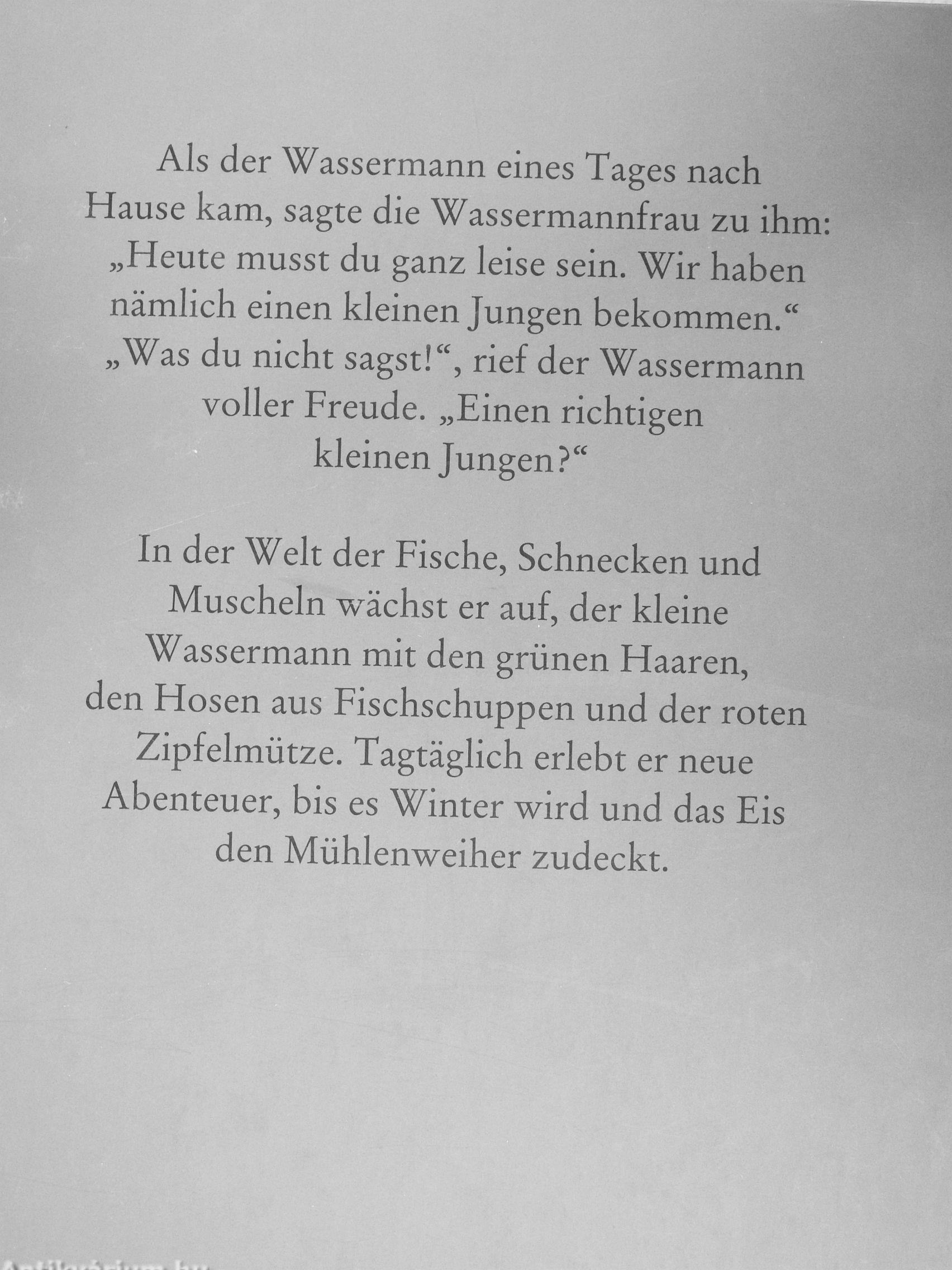 Muscheln wächst er auf, der kleine Wassermann mit den grünen Haaren, den Hosen aus Fischschuppen und der roten Zipfelmütze. Tagtäglich erlebt er neue Abenteuer, bis es Winter wird und das Eis den Mühlenweiher zudeckt.