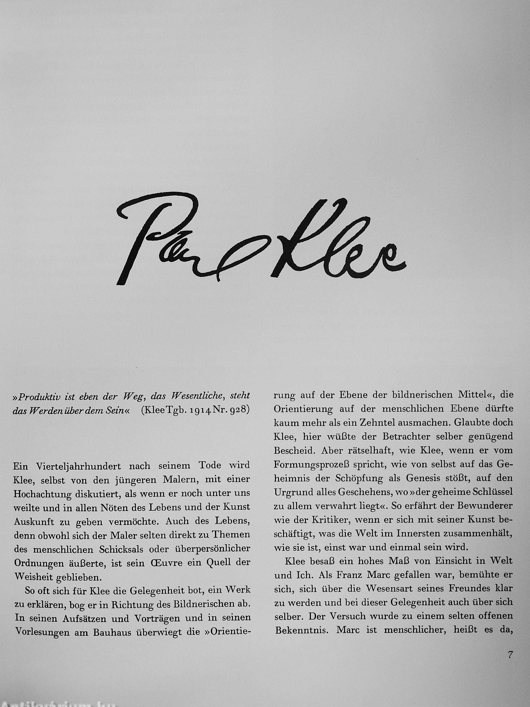 Bei diesem Buch fällt es schwer, nicht zu schwärmen. Grohmann, der verständnisvolle Freund, (irohmann, der Kritiker mit Spürsinn, der sich für Klee einsetzte, lange bevor seine Bedeutung allgemein anerkannt wurde, schrieb diese Monographie. Ein herrliches Buch! Unter den Tafeln viele zum ersten Mal publizierte Arbeiten aus Privatsammlungen. Jede anschaulich imd fesselnd kommentiert. Ein sehr empfehlenswerter Band. Rias, Berlin