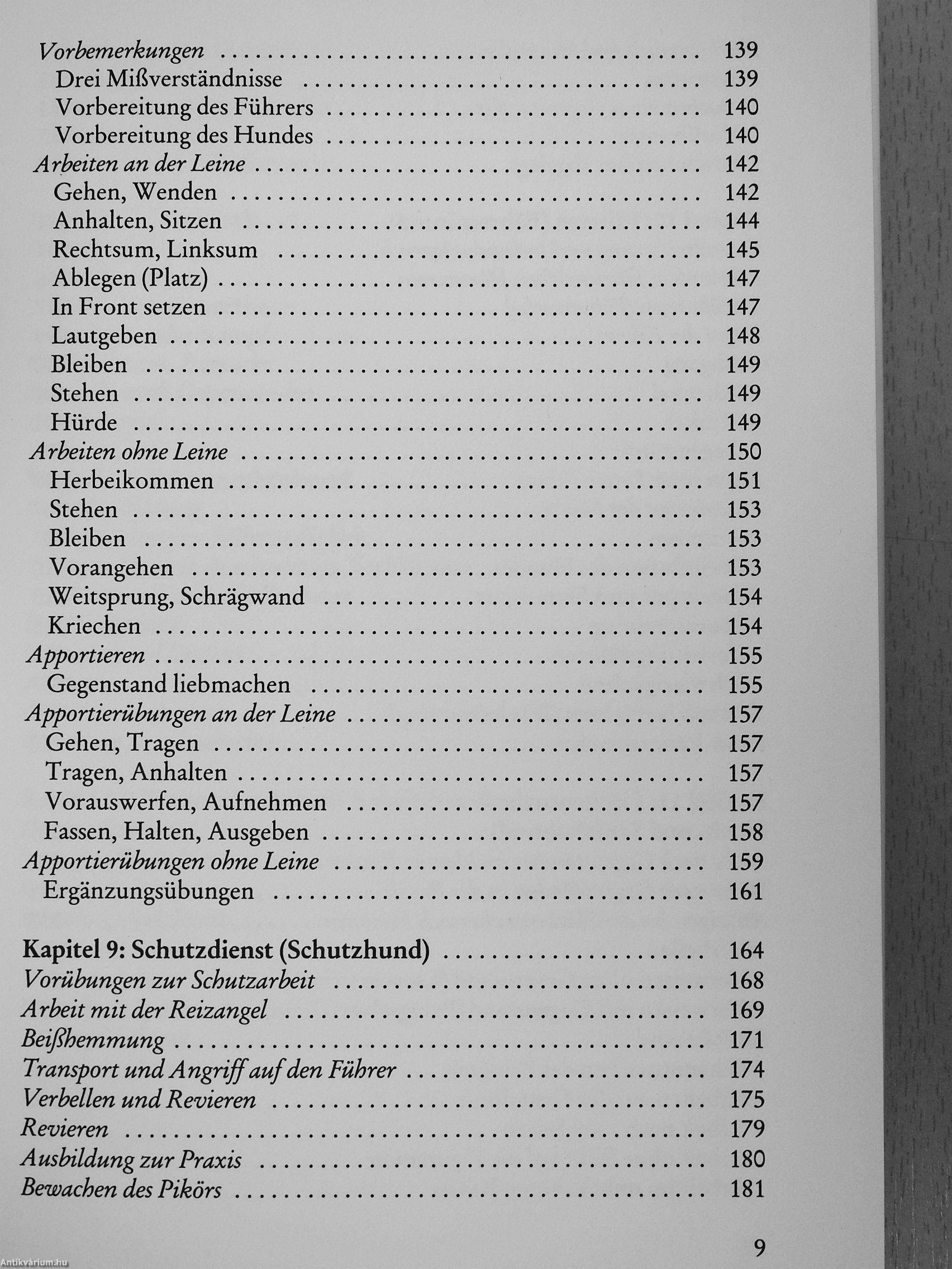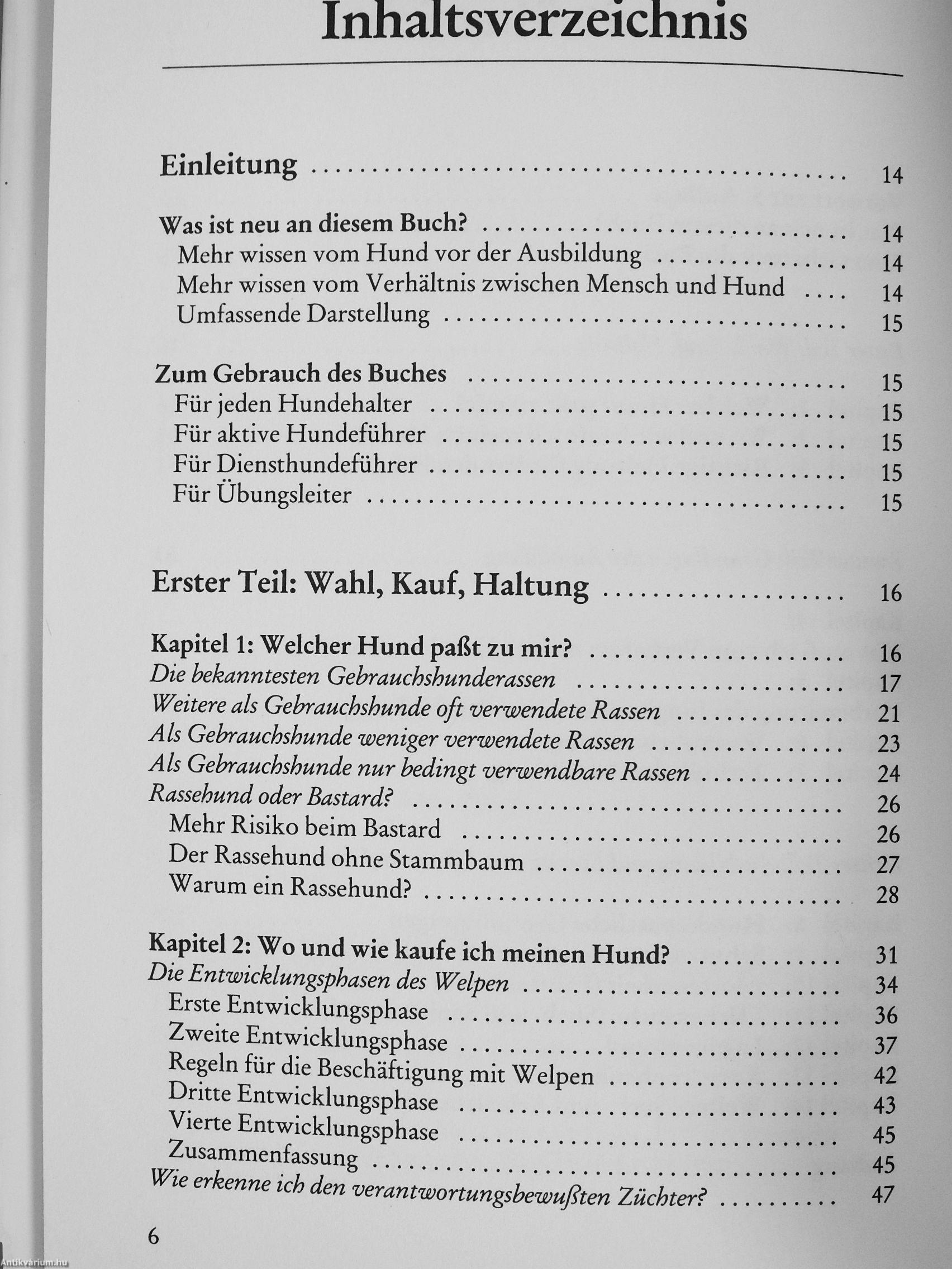 ist im ersten Teil des Bandes von Wahl. Kauf und Haltung des Hundes die Rede, so folgen im zweiten Teil die wichtigen Grundlagen der Ausbildung. denen sich im dritten Teil die eigentliche Ausbildung und der Einsatz von Führer und Hund anschließen.