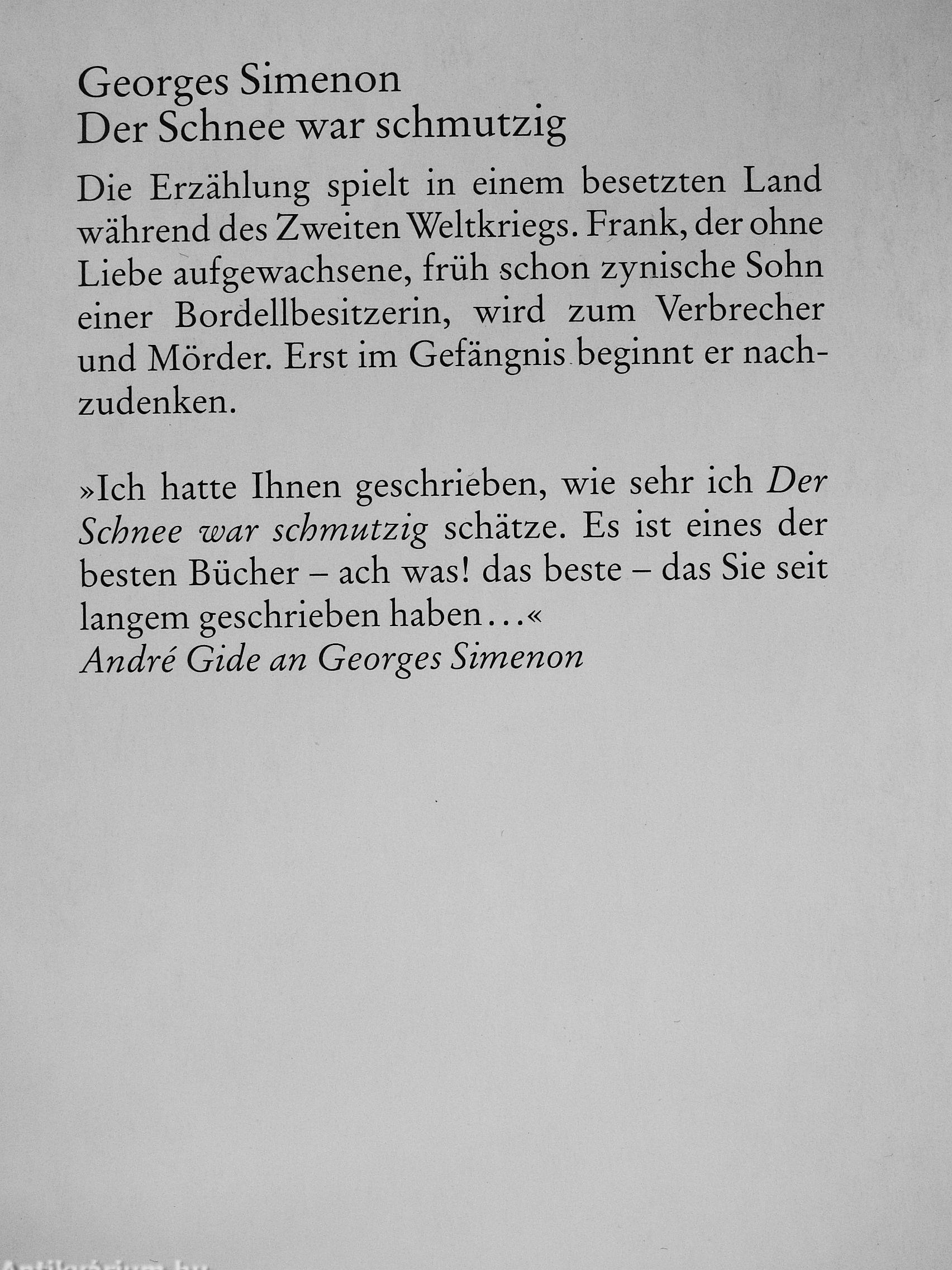 »Ich hatte Ihnen geschrieben, wie sehr ich Der Schnee war schmutzig schätze. Es ist eines der besten Bücher - ach was! das beste - das Sie seit langem geschrieben haben « André Gide an Georges Simenon