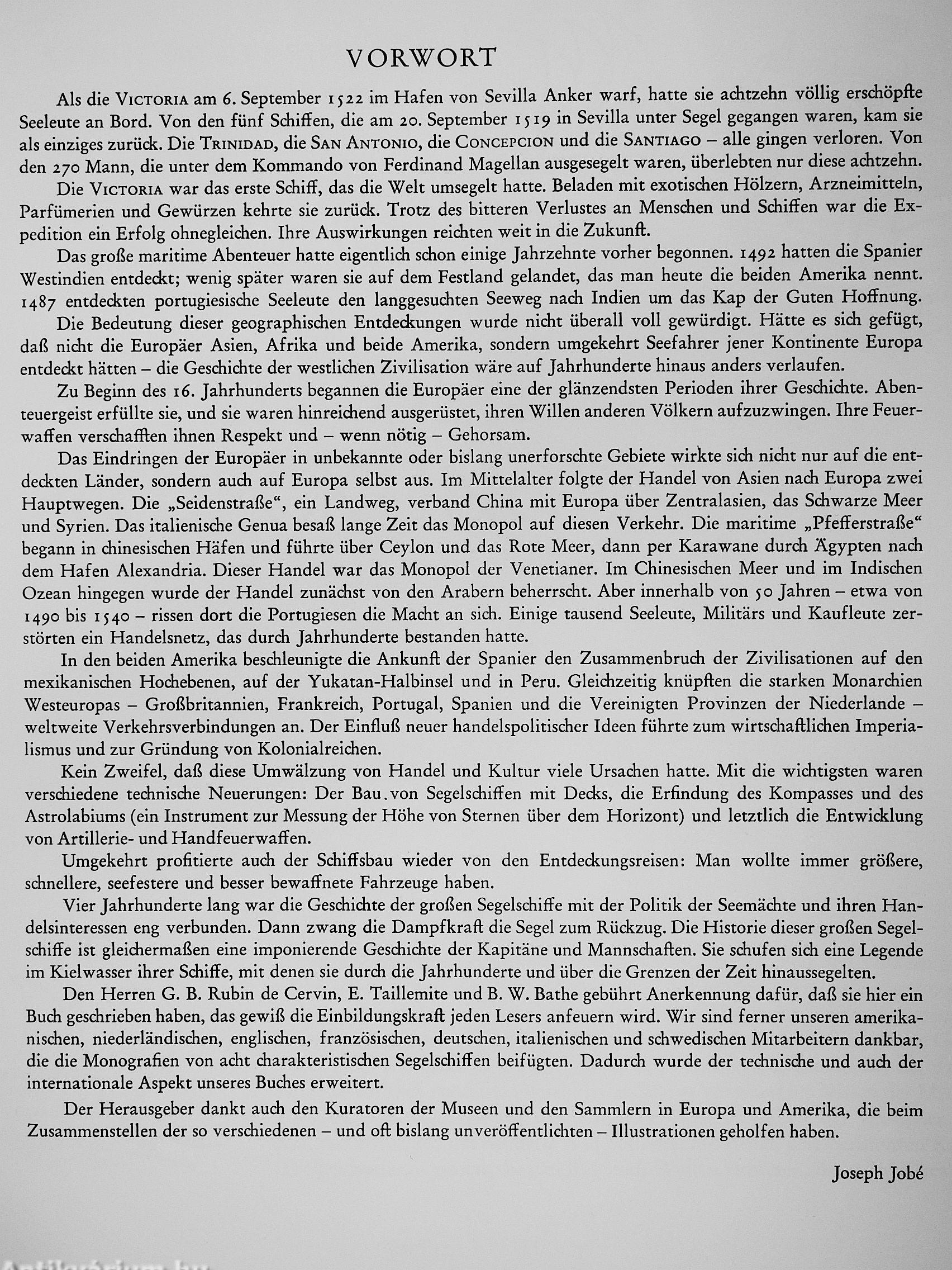 Es ist den Segelschiffen zu verdanken, ihren Kapitänen und Matrosen, wenn Geographen schon früh die Landkarten fremder Kontinente zeichnen konnten, wenn Kaufleute neue Handelswege erschlossen und die seefahrenden Nationen große Kolonialreiche aufbauten, denen sie ihre Politik und ihre Kultur aufprägten.
