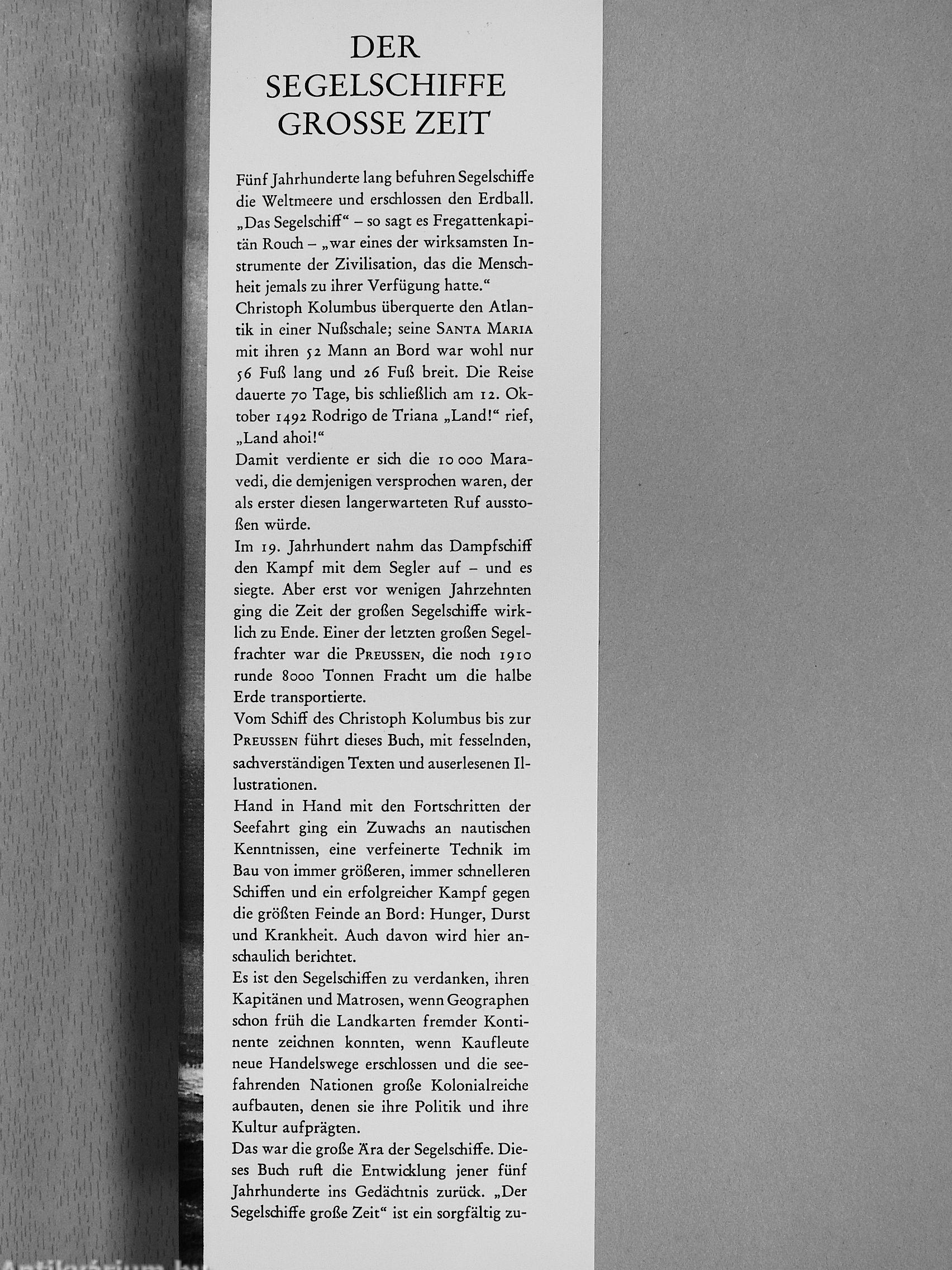 Vom Schiff des Christoph Kolumbus bis zur Preussen führt dieses Buch, mit fesselnden, sachverständigen Texten und auserlesenen Illustrationen.