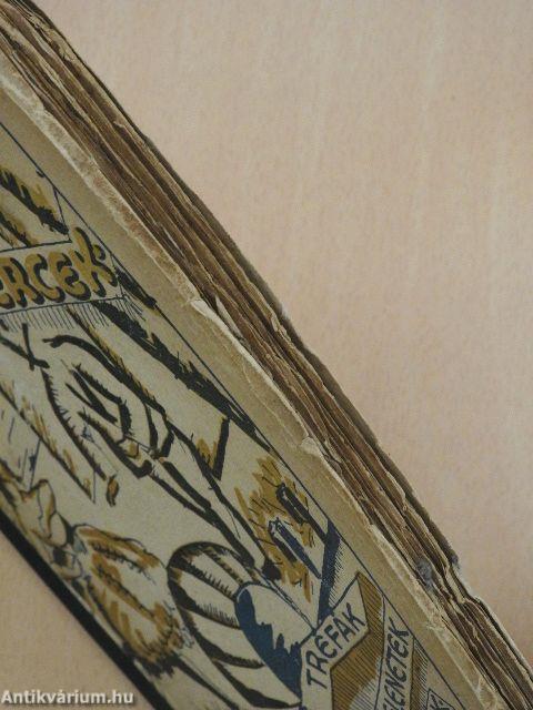 A gerinc vászonnal pótolt, a kötés javított. A borító és néhány lap foltos. A borító széle megtört, a lapélek egyenetlenek.