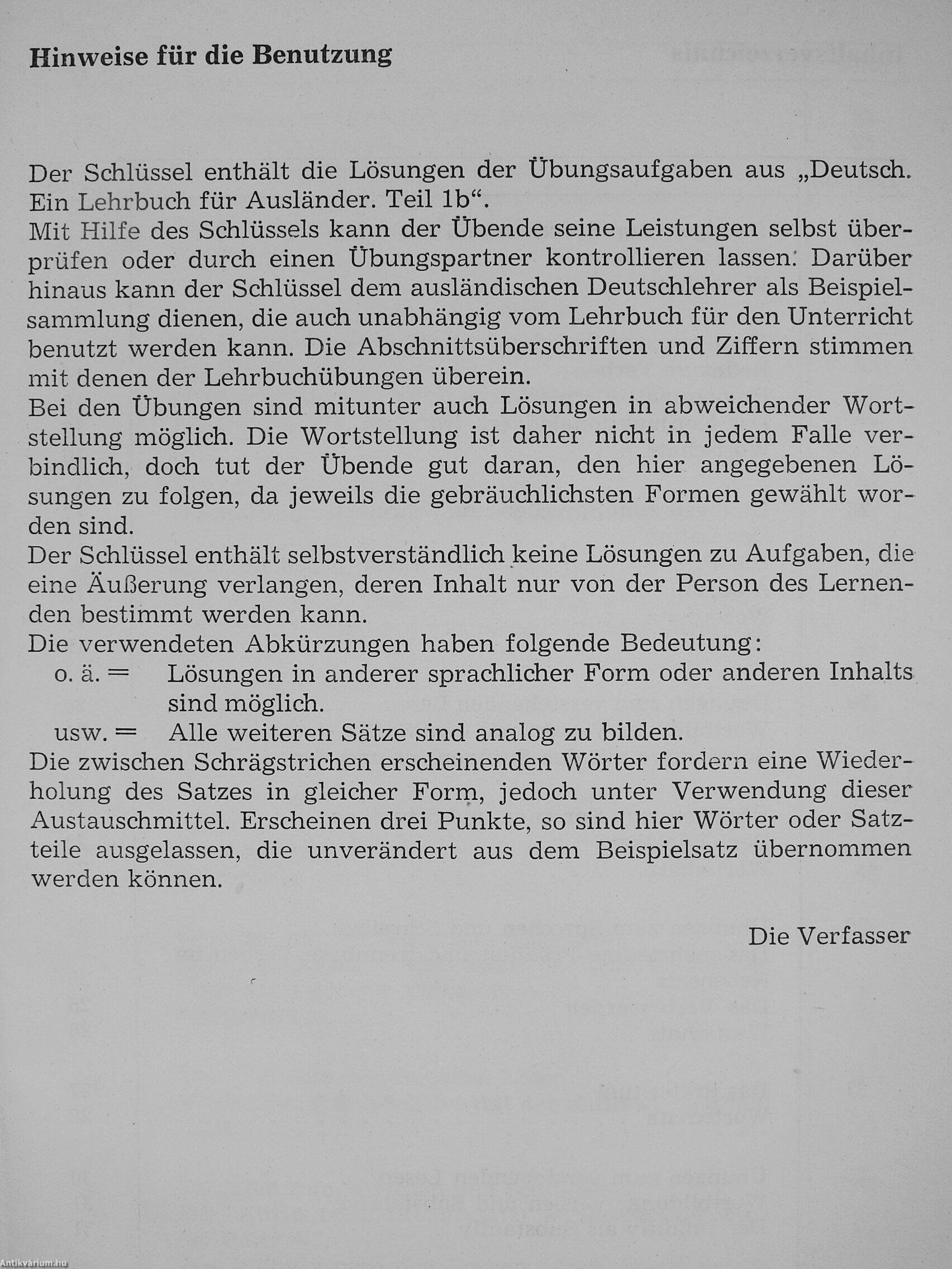 Deutsch - Ein Lehrbuch für Ausländer - Schlüssel 1b