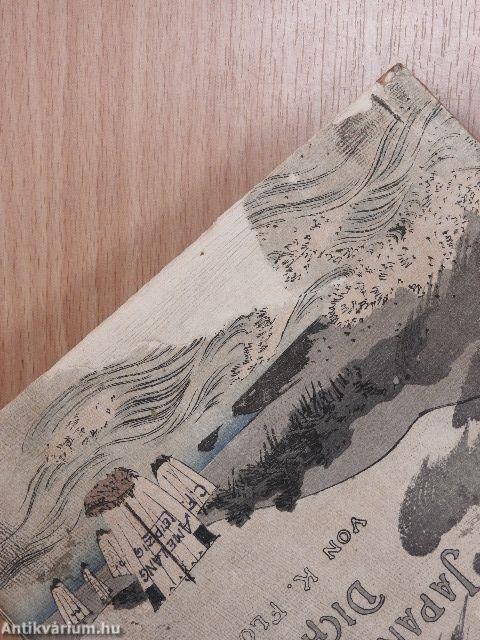 | Megjegyzés: | Japán, selyemhatású merített papíron, selyemfonallal megerősített, vágatlan, dupla ívekkel készült könyv, oldalszámozáson belül 4 egész oldalas és számos szövegközti meseszép, kézzel festett, részletgazdag illusztrációval! A könyv nyomtatását, a papír minőségét és a rajzokat T. Hasegawa készítette - több művész mellett - és felügyelte Tokióban. A fordító, Karl Florenz (1865-1939), japanológus. Rendkívül ritka könyv! |