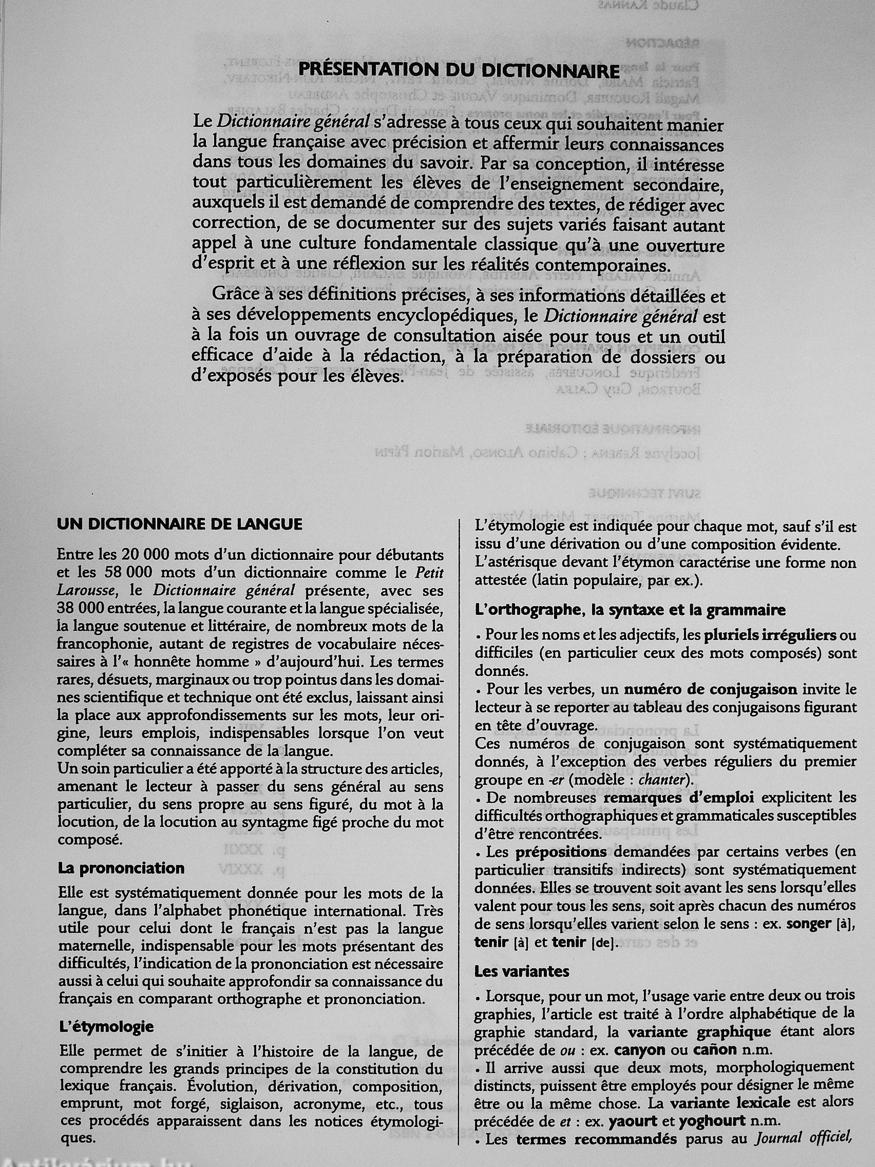 En langue française, sa richesse en fait un outil de consultation et d'aide a la rédaction particulierement adapté aux exigences de l'enseignement :