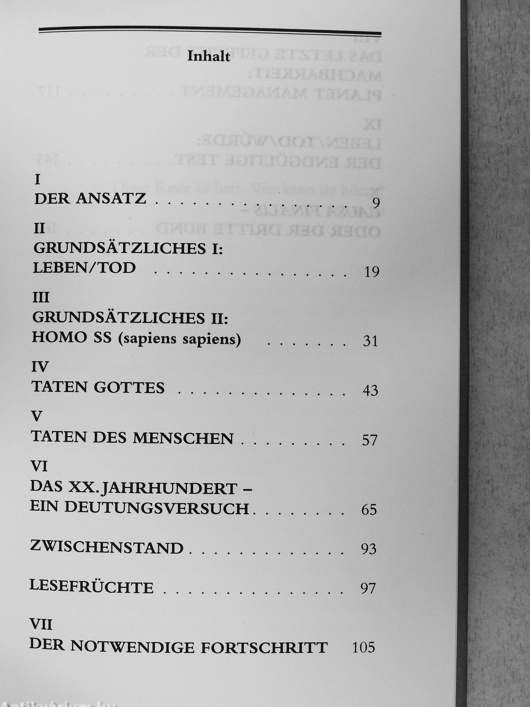 Ein Jahrhundert, ja ein Jahrtausend geht zu Ende, und Carl Amery fragt, was denn die Botschaft des Jahrtausends sei. Mit seiner Antwort kehrt er zurück zur Arbeit an einer Grünen Philosophie und sagt, daß sie nach Jahren der Verdrängung durch sogenannte politische Aktualitäten wieder an die Spitze aller Dringlichkeiten gesetzt werden müsse, weil es sich schließlich um die Gattungsfrage handle, das heißt die Frage der Möglichkeit bzw. Unmöglichkeit einer menschlich bewohnbaren Zukunft. Die Botschaft des Jahrtausends sieht er in dieser nicht mehr zu umgehenden Dringlichkeit. Bis vor kurzer Zeit war die Menschheit von »Höherer Gewalt« bedroht und gleichzeitig an einer lebensbedrohenden Expansion gehindert. Die Situation hat sich gründlich geändert, und es ist zu befürchten, daß in der Suche nach einem Ausgleich der Waagschalen von Leben und Tod entweder die biologische Barbarei (Vorläufer Adolf Hitler!) oder ein technokratisch orientiertes Selektions-Management siegreich bleibt. Dem gilt es im Namen menschlicher Würde entgegenzutreten. Die letzte, allerschwierigste Frage lautet: Wie hat der Mensch zu leben, der wenigstens im Ansatz deri Auflagen der Natur folgt, um die Zukunft zu sichern? Mit seinen grundlegenden Schrif-