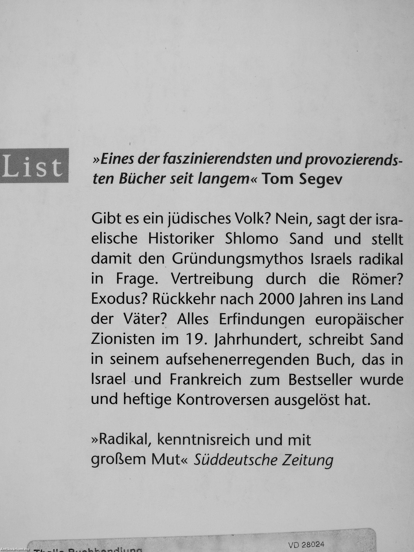 Gibt es ein jüdisches Volk? Nein, sagt der israelische Historiker Shiomo Sand und stellt damit den Gründungsmythos Israels radikal in Frage. Vertreibung durch die Römer? Exodus? Rückkehr nach 2000 Jahren ins Land der Väter? Alles Erfindungen europäischer Zionisten im 19. Jahrhundert, schreibt Sand in seinem aufsehenerregenden Buch, das in Israel und Frankreich zum Bestseller wurde und heftige Kontroversen ausgelöst hat.