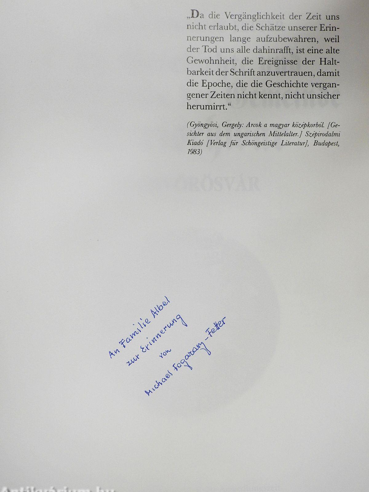 Az egyik lapon a szerző, Michael Fogarasy-Fetter névre szóló dedikációja látható.