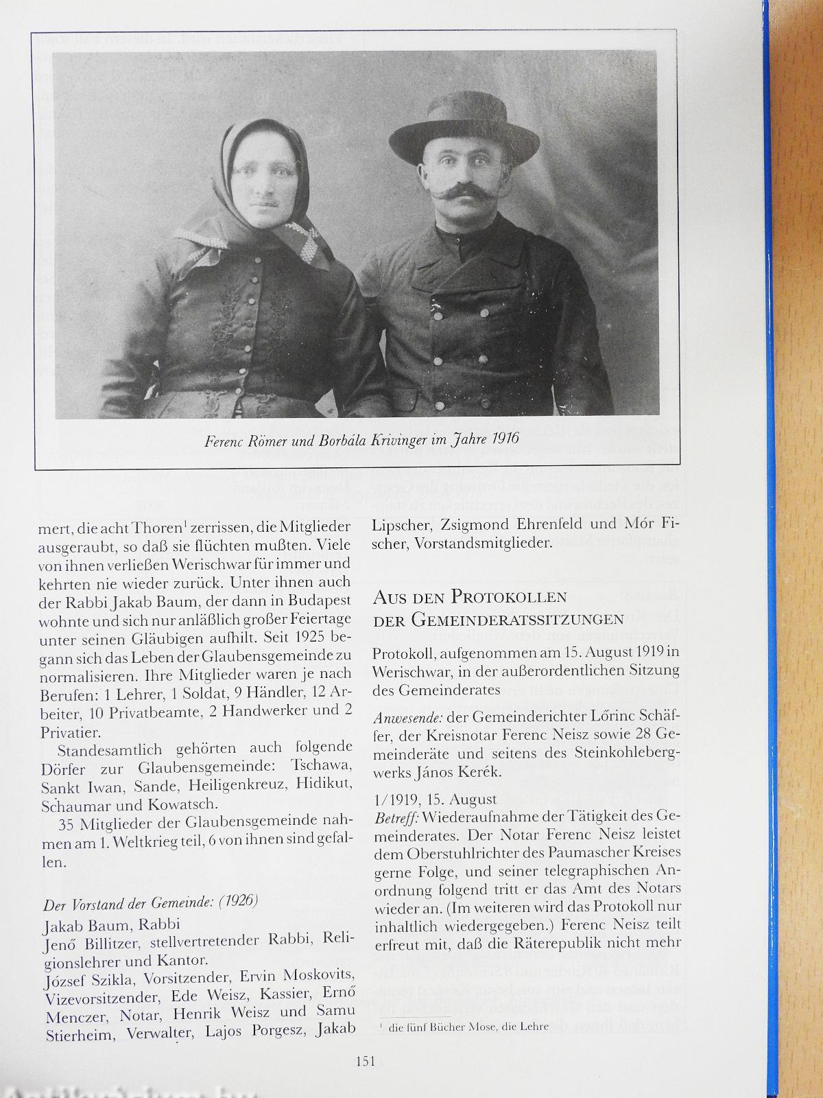 Die Geschichte und Volkskunde der Gemeinde Werischwar (dedikált példány)