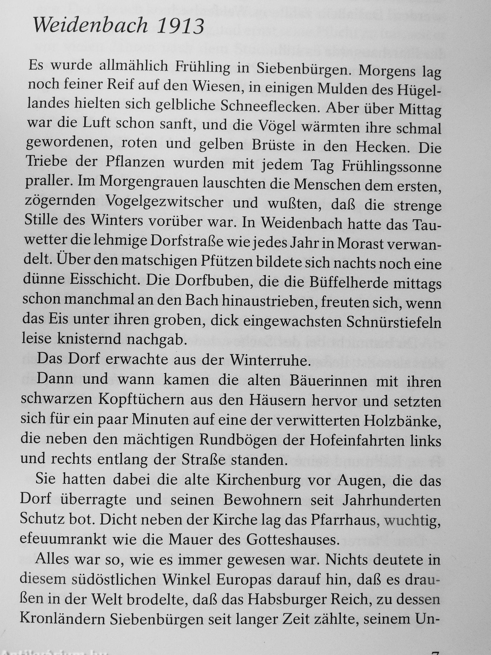 Bilder von fruchtbaren Landschaßen am Fuße der Karpaten, von altehrwürdigen Städten, stattlichen Gütern und bunten Holzhäusern prägen sich ein. Aber vor allem die Menschen: deutsche Fabrikanten, österreichische Offiziere, jüdische Bankiers, verträumte Künstler, ungarische Stiefelknechte -neben-, mit- und auch gegeneinander bewohnten sie ein Land, das stolz war auf seine Verbindung zum Westen und aufdie eigenen Traditionen.