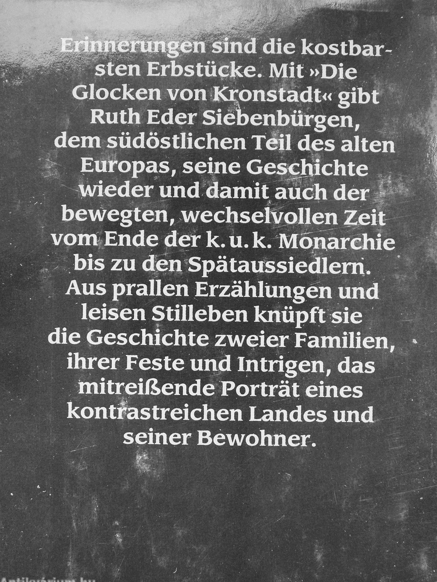 h sfnd die kostbar-. sten Erbstücke. Mit »Die Glocken von Kronstadt« gibt N , Ruth Eder Siebenbürgen, ^^ dem südöstlichen Teil des alten I Europas, seine Geschichte ^ iivieder und damit auch der ^ bewegten, wechseivollen Zeit vom^Ende der k. ü. k. Monarchie , ¦ bis zu den Spätaussieiiierri. Aus prallen Erzählungen und leisen Stilleben knüpft sie die Geschichte zweier Familien, ihrer Feste und Intrigen, das mitreißende Porträt ^ kontrastreichen Landes und seiner Bewohner.