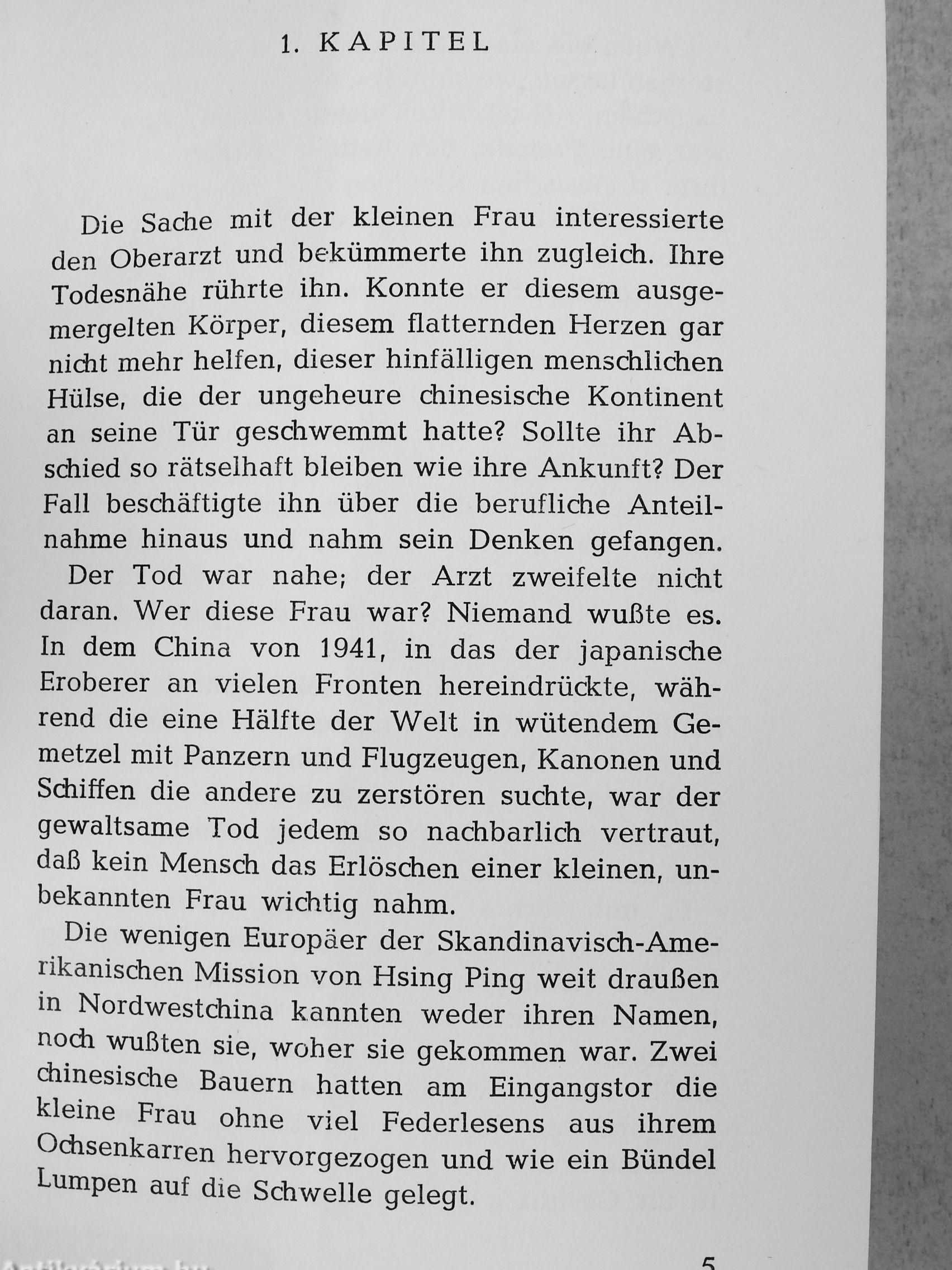 „Wenn das Leben einer Missio-narin zum Gegenstand eines Romans gemacht wird, der gleichzeitig in zehn Ländern erscheint und verfilmt wird, so sagt dies genug über die Größe und den Wert des dargestellten Gegenstandes. Es ist die Geschichte einer Frau, die in ihrer Einfachheit Gott ernst genommen hat. In farbigen Bildern erleben wir die Tätigkeit dieser christlichen Heldin im gärenden Chaos Chinas."