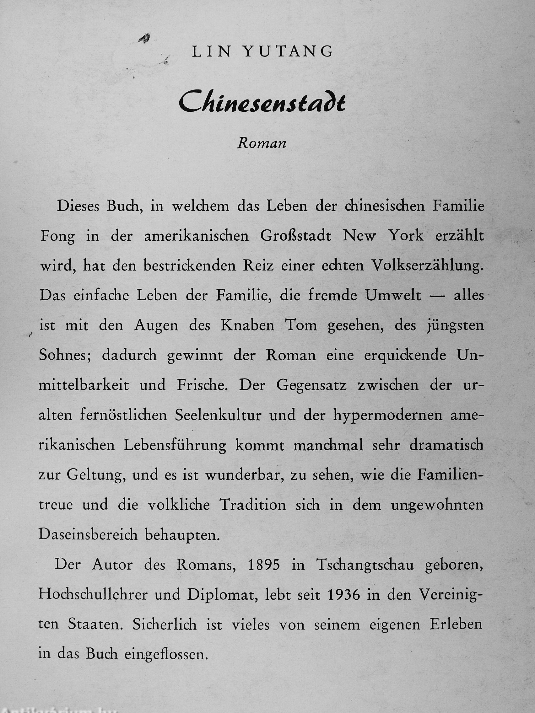 Der Autor des Romans, 1895 in Tschangtschau geboren, Hochschullehrer und Diplomat, lebt seit 1936 in den Vereinigten Staaten. Sicherlich ist vieles von seinem eigenen Erleben in das Buch eingeflossen.